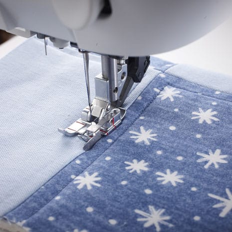 The 1/4 inch Right Guide Foot also gives a perfect 1/4 inch top stitch distance from the edge of a block when stitching the blocks, batting and backing together.