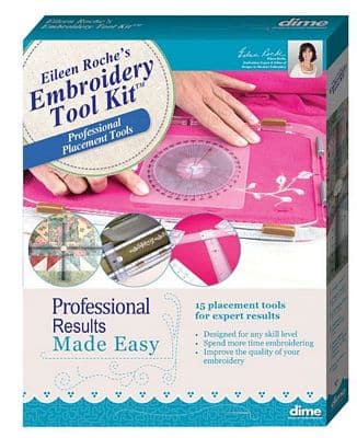 Everything you need for professional results is in one easy-to-use package and for less than the price of a botched polo shirt. A comprehensive kit The Embroidery Tool Kit combines proven favorites with some new essentials never before offered. All the tools have been designed by Eileen Roche as a solution to many embroidery challenges. Whether you are facing simple hooping or complex design placement this kit has the tools to guarantee success.