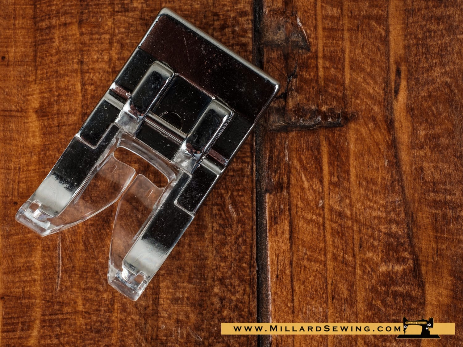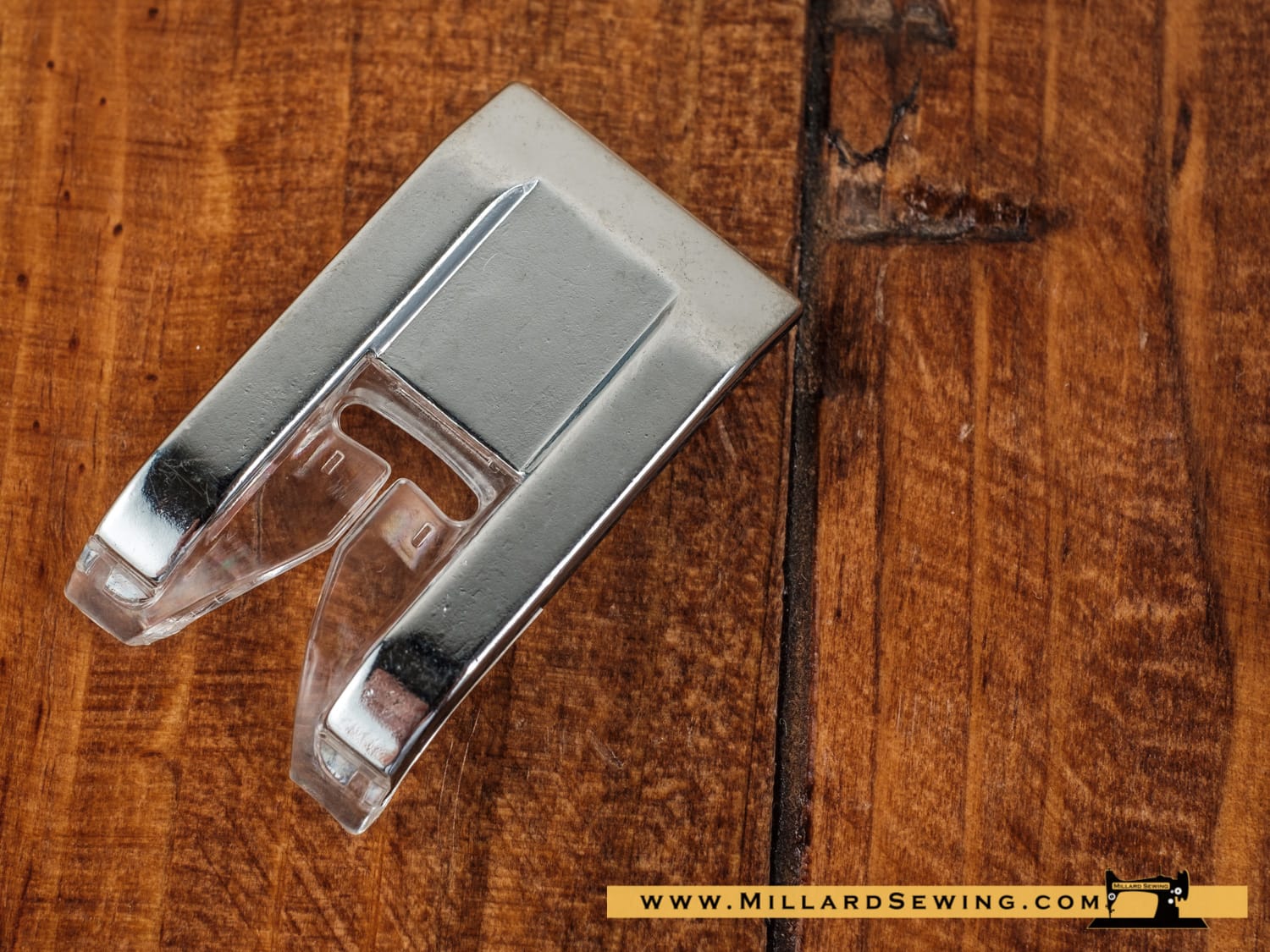 For sewing dense zigzag stitching. The bottom of the foot is beveled for smooth delivery of thread when sewing decorative or sating stitches.