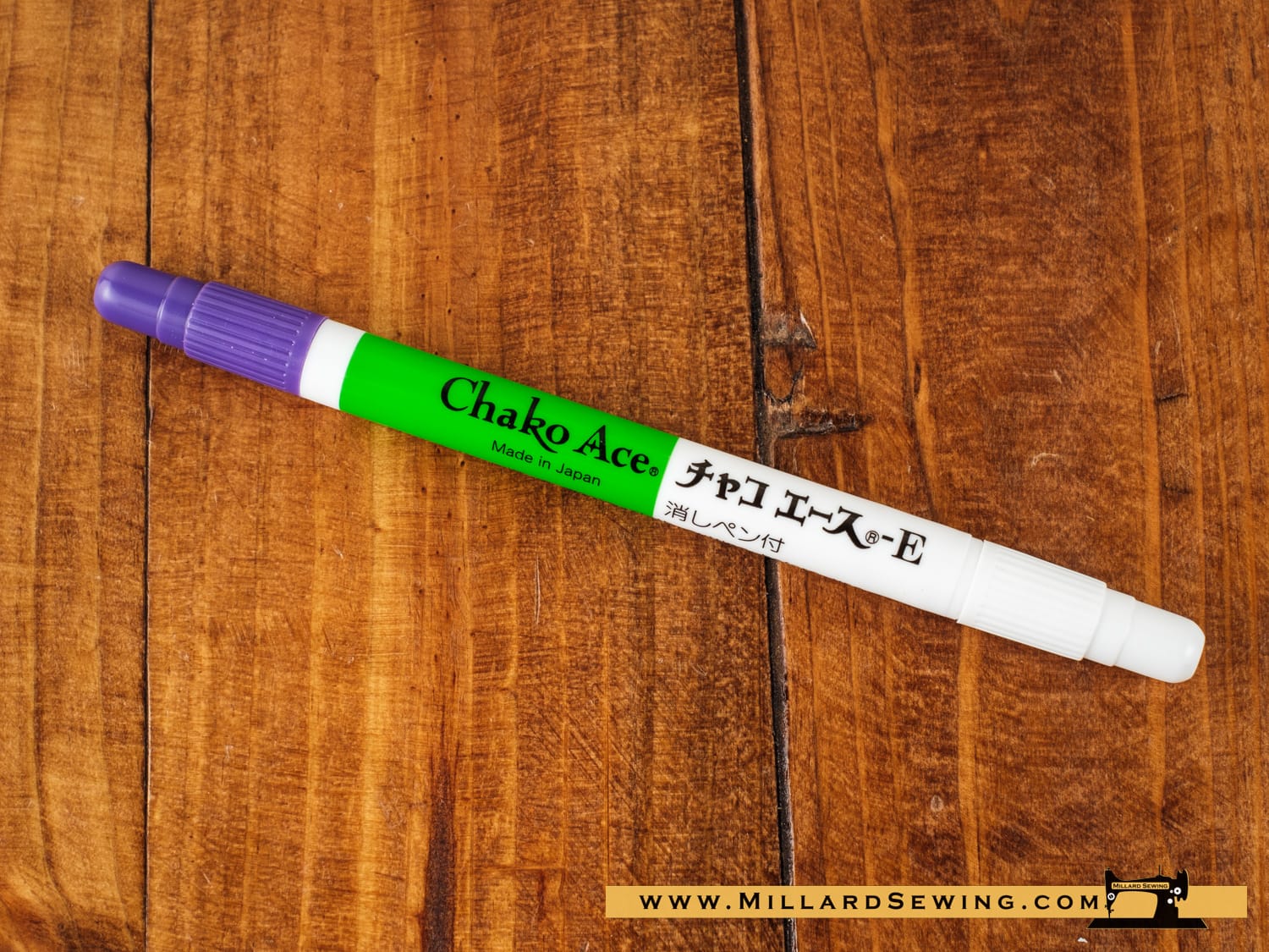 This marker’s purple ink disappears on it’s own in 2 to 14 days depending on type of material used. It can also be erased by using the eraser end of the marker or water. Excellent for fine line writing. Plastic pen point always produces a fixed thickness.