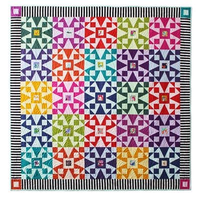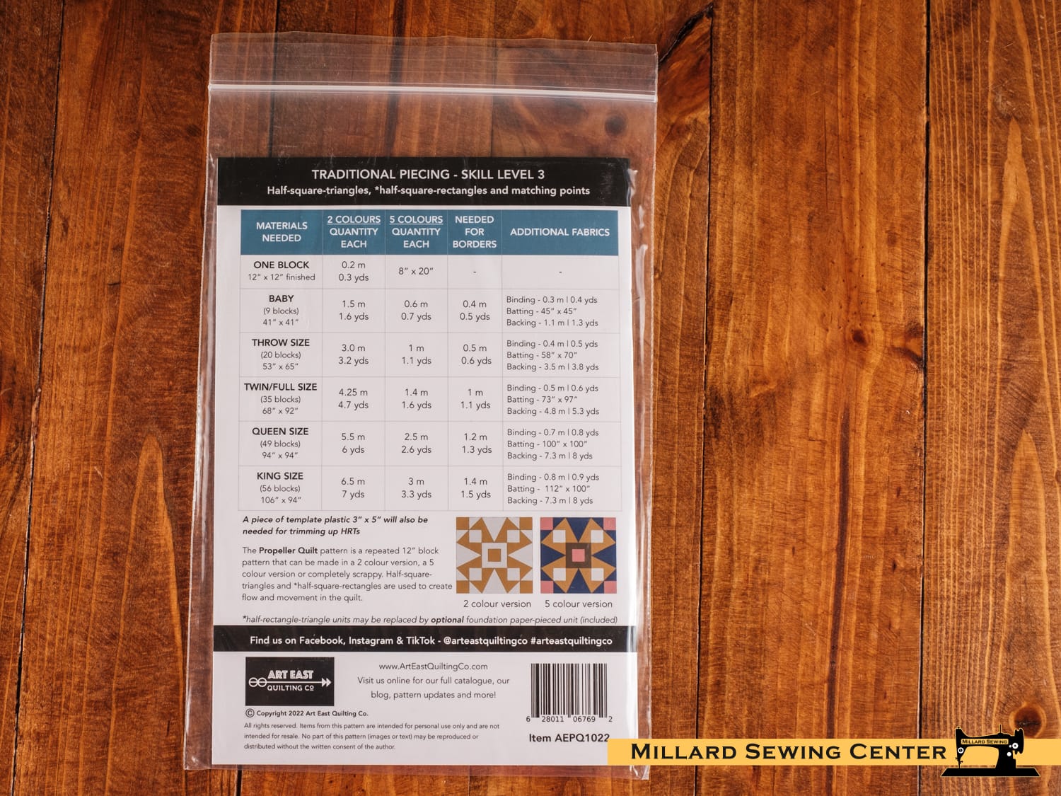 The Propeller Quilt – Pattern Booklet This pattern booklet includes the instructions for creating a stunning repeated block quilt in five size (baby, throw, twin/full, queen and king). The placement of its pieces creates propeller-like shapes that, when combined, gives the quilt top a repeat of circular movement. It is traditionally pieced and relies on half-square-triangles, half-rectangle-triangles and regular sewing.ย Create the quilt in the two colour version for a more traditional look, or go wild with five colours for a bold modern look. The instructions are also provided to create the quilt by block for the maker who desires to make a scrappy quilt.ย A FPP (foundation paper piece) insert is included to replace the need for half-rectangle-triangles, if the maker so chooses, but this is completely optional and no knowledge of paper-piecing is need to complete the quilt.ย The pattern is 16 pages, printed in full-colour and saddle stitched with a soft laminate cover.