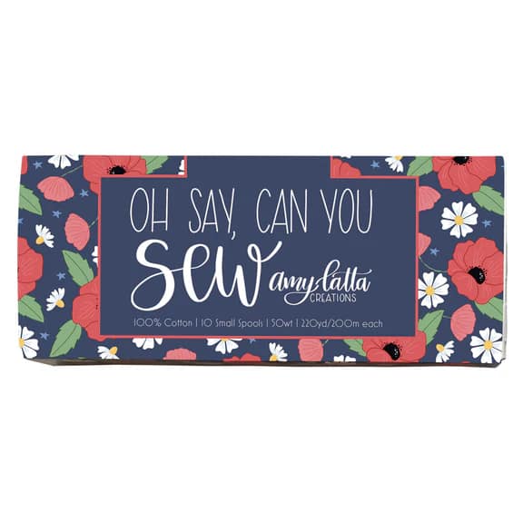 Oh Say Can You Sew marks the Aurifil debut of designer Amy Latta, introducing a collection that celebrates creativity, craftsmanship, and heartfelt American pride. Inspired by the enduring spirit of patriotism, Amy’s Andover Fabrics collection features bold stripes, scattered stars, and bright poppy blooms—each motif honoring the courage and sacrifice of American soldiers. Hand-lettered national words and phrases, rendered in Amy’s signature style, add a touch of personal artistry to every design.