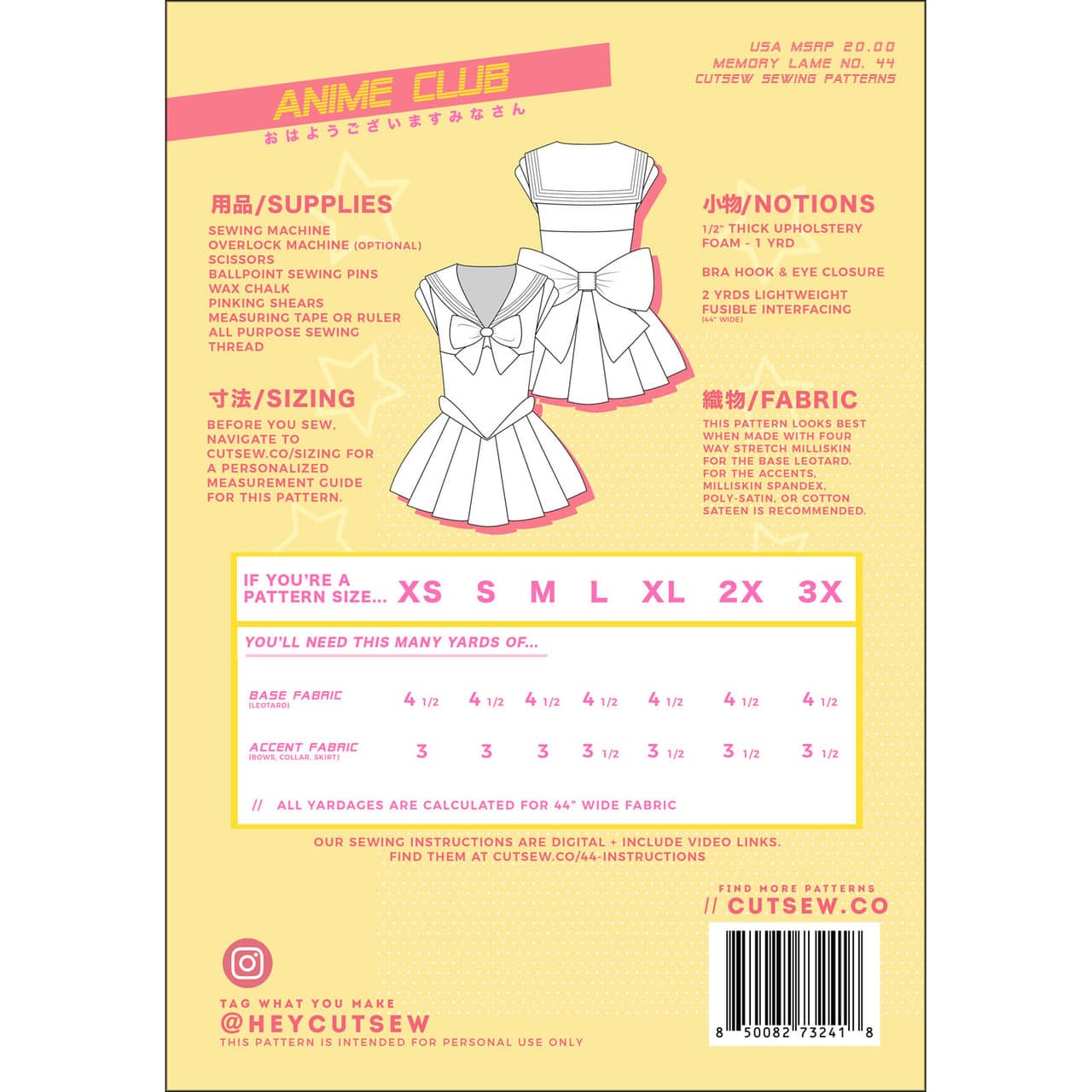 Don’t show up to anime club without the cosplay staple. Our all-in-one leotard pattern features a sailor collar, under bust style lines, a knife pleated skirt, and crotch closure for a seamless look. Add extra oomph with hip and shoulder foam rolls and two big bows, because let’s be real what’s 90’s anime without big bows?