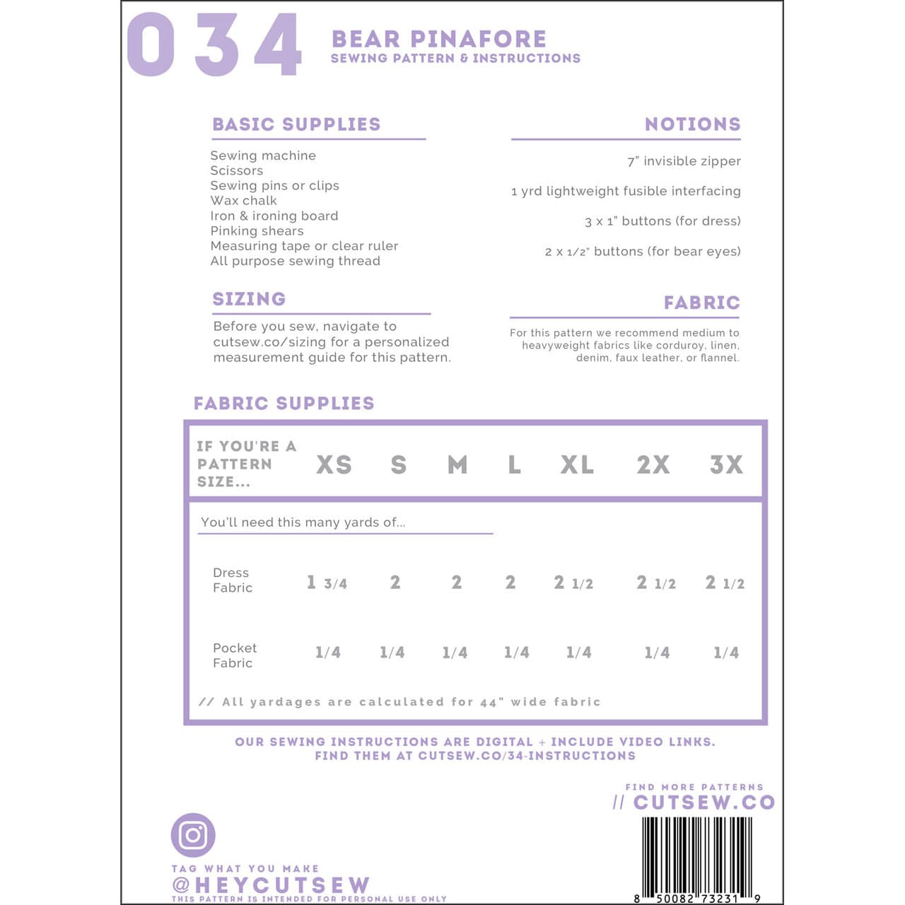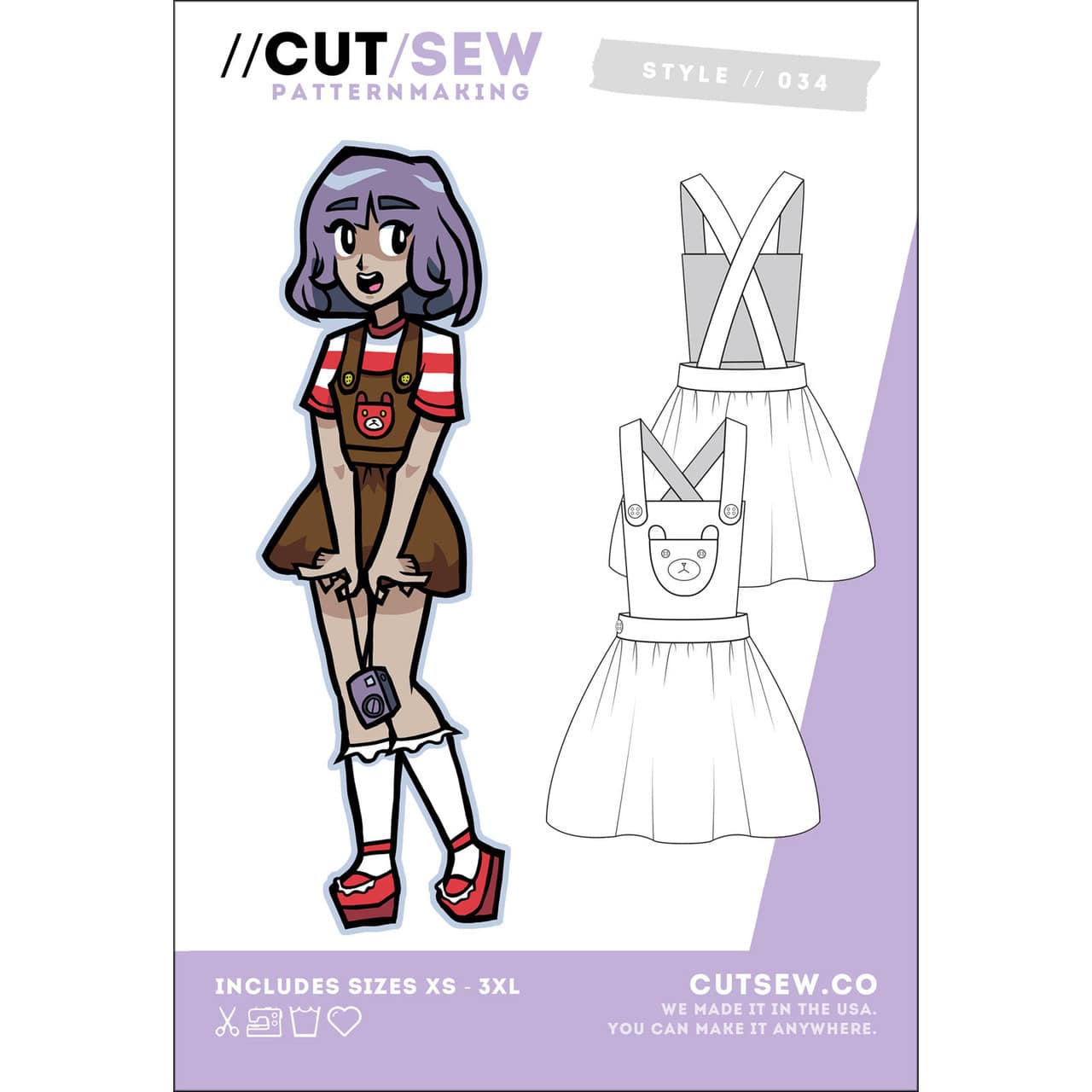 Easy to customize for a variety of body types, our pinafore pattern features a center back zipper with a waistband button closure, button on overall-style straps, and a super cute bear face on the front pocket that can be customized to your hearts content. Make it your own with unique buttons & trims, or just keep it simple for a hella kawaii daytime look.