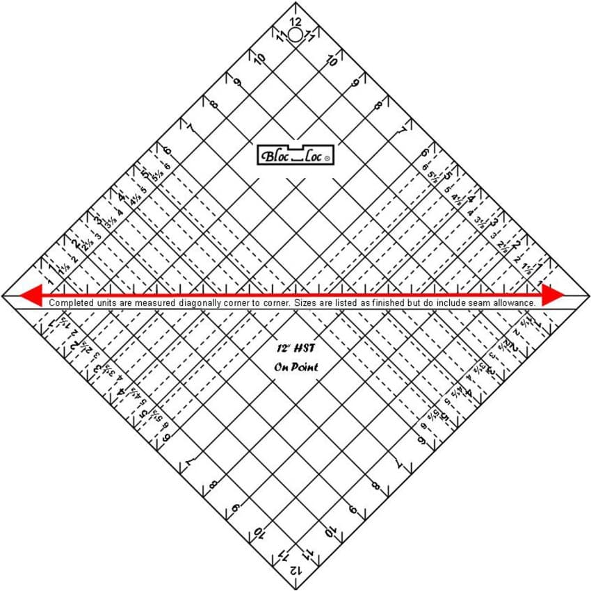 Ruler, 12″ Half-Square Triangle On Point Ruler by Bloc-Loc
