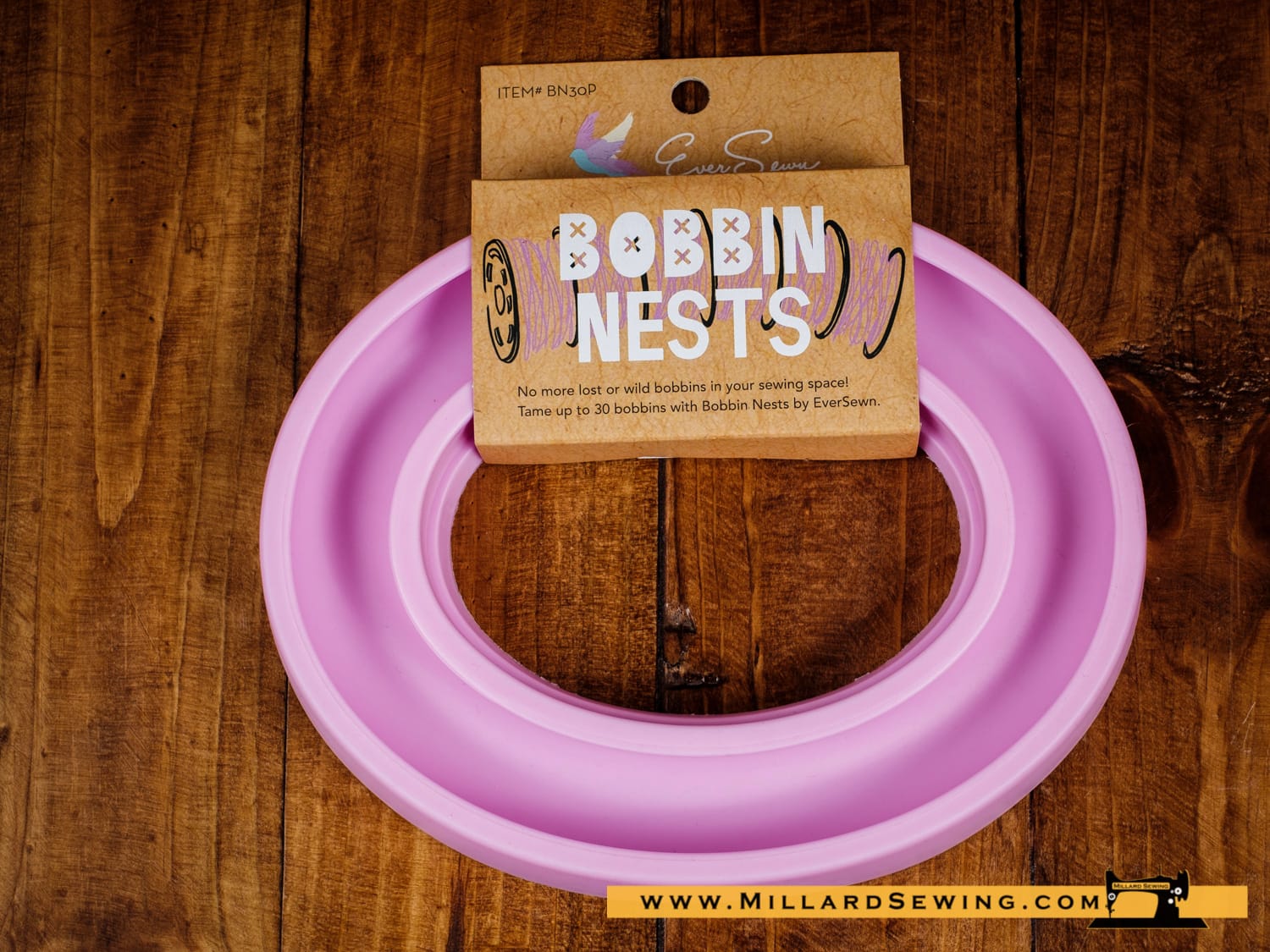 It’s flexible plastic and expands when you add a bobbin to the ring. It holds the bobbins in a snuggled fit. The best part is it hold the bobbins snug enough that the thread does not unravel.