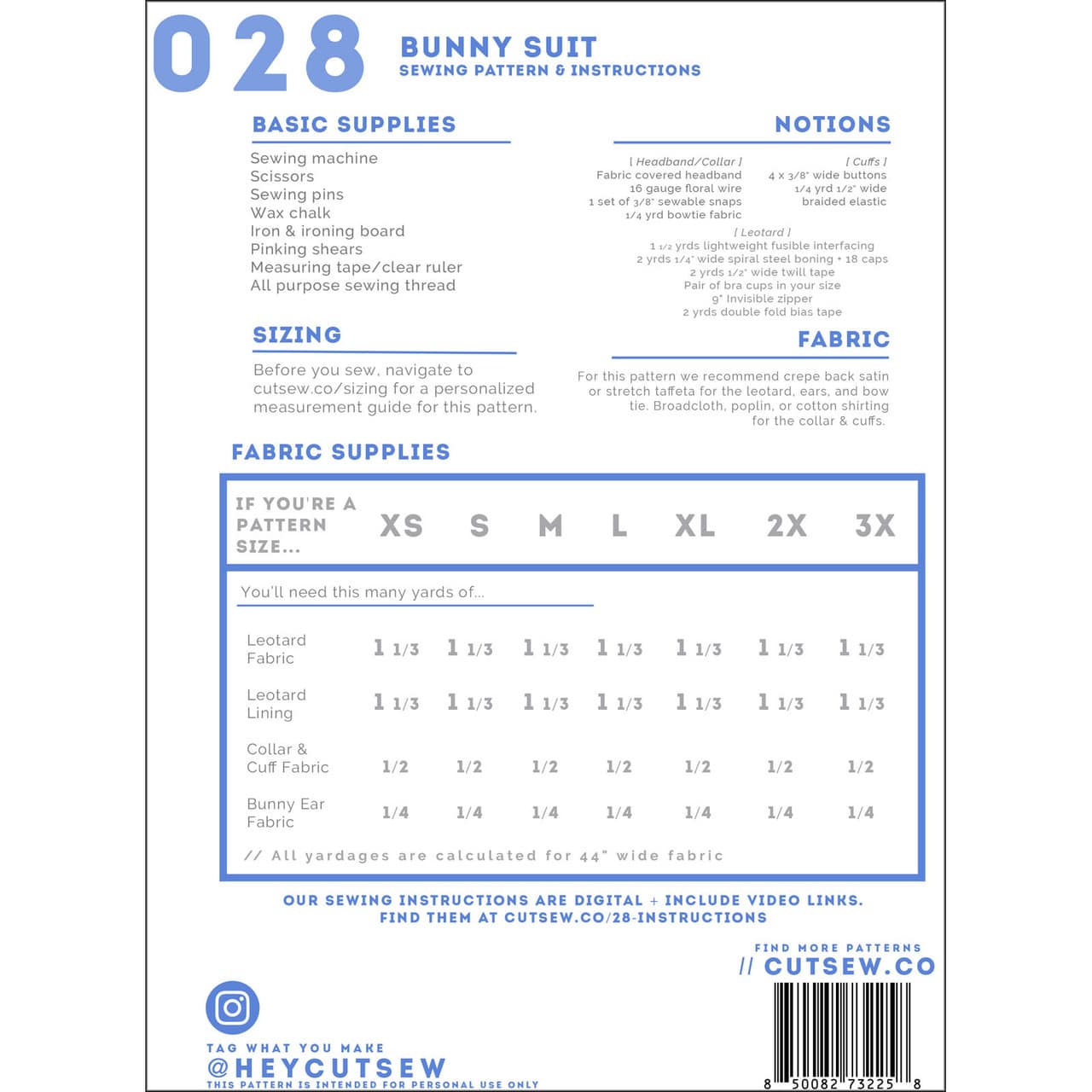 Bunny Suit Cosplay Pattern