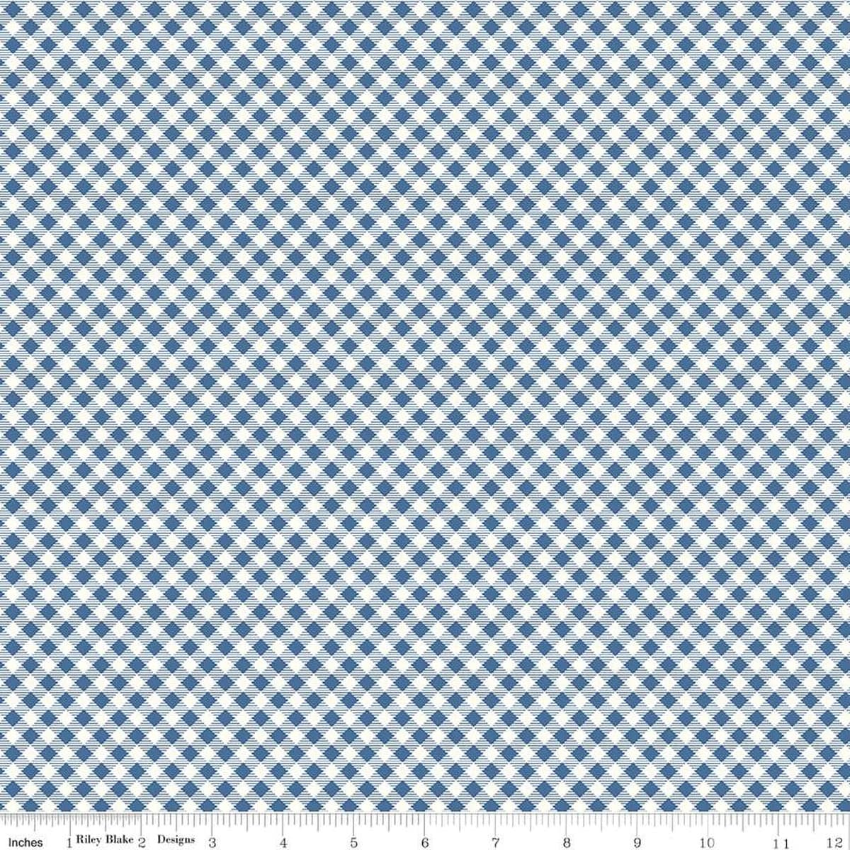 Bee Ginghams by Lori Holt of Bee in my Bonnet for Riley Blake Designs is great for quilting, apparel and home decor. This print features a 3/8″ diagonal, checked plaid with a striped square.