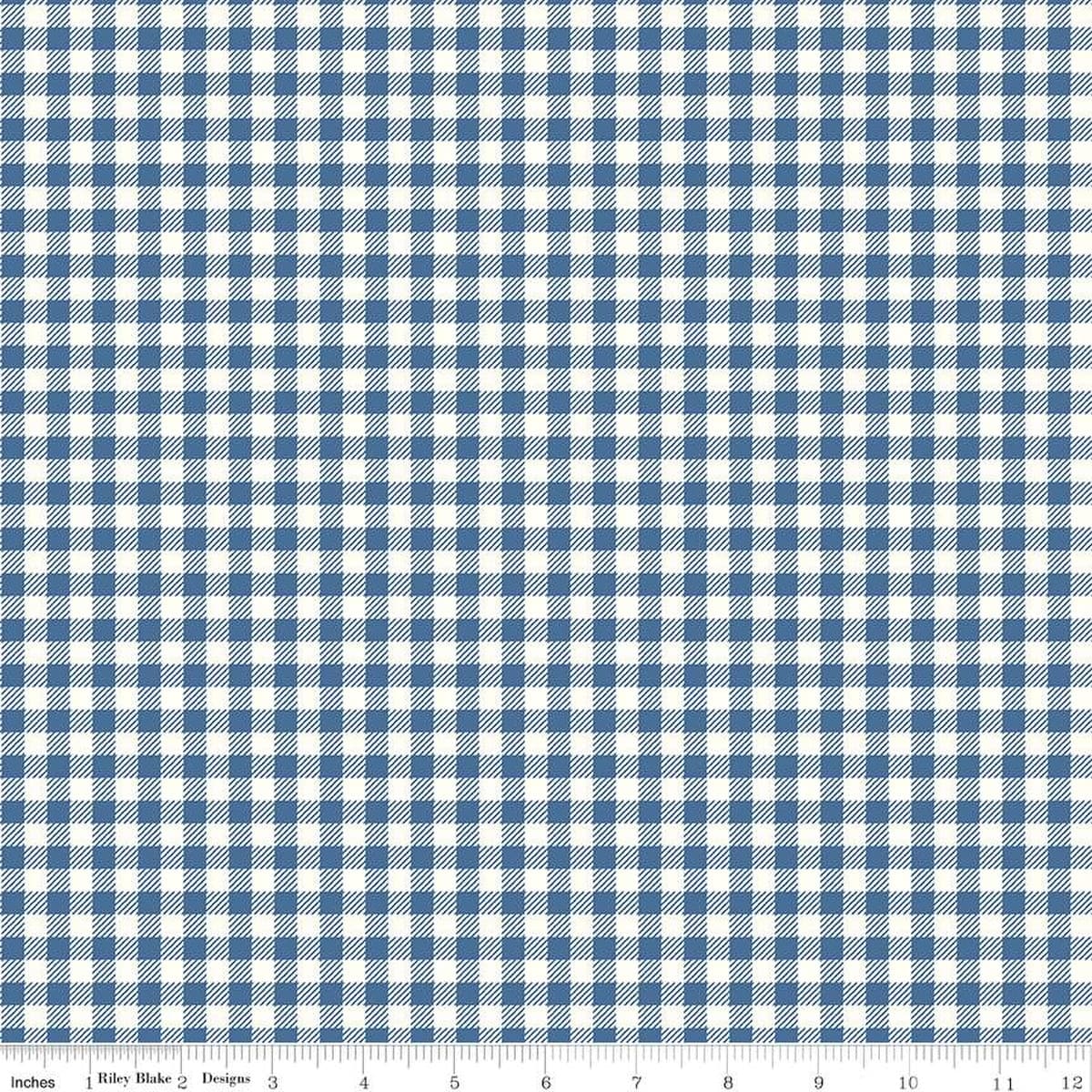 Bee Ginghams by Lori Holt of Bee in my Bonnet for Riley Blake Designs is great for quilting, apparel and home decor. This print features a 3/8″ diagonal, checked plaid with a striped square.