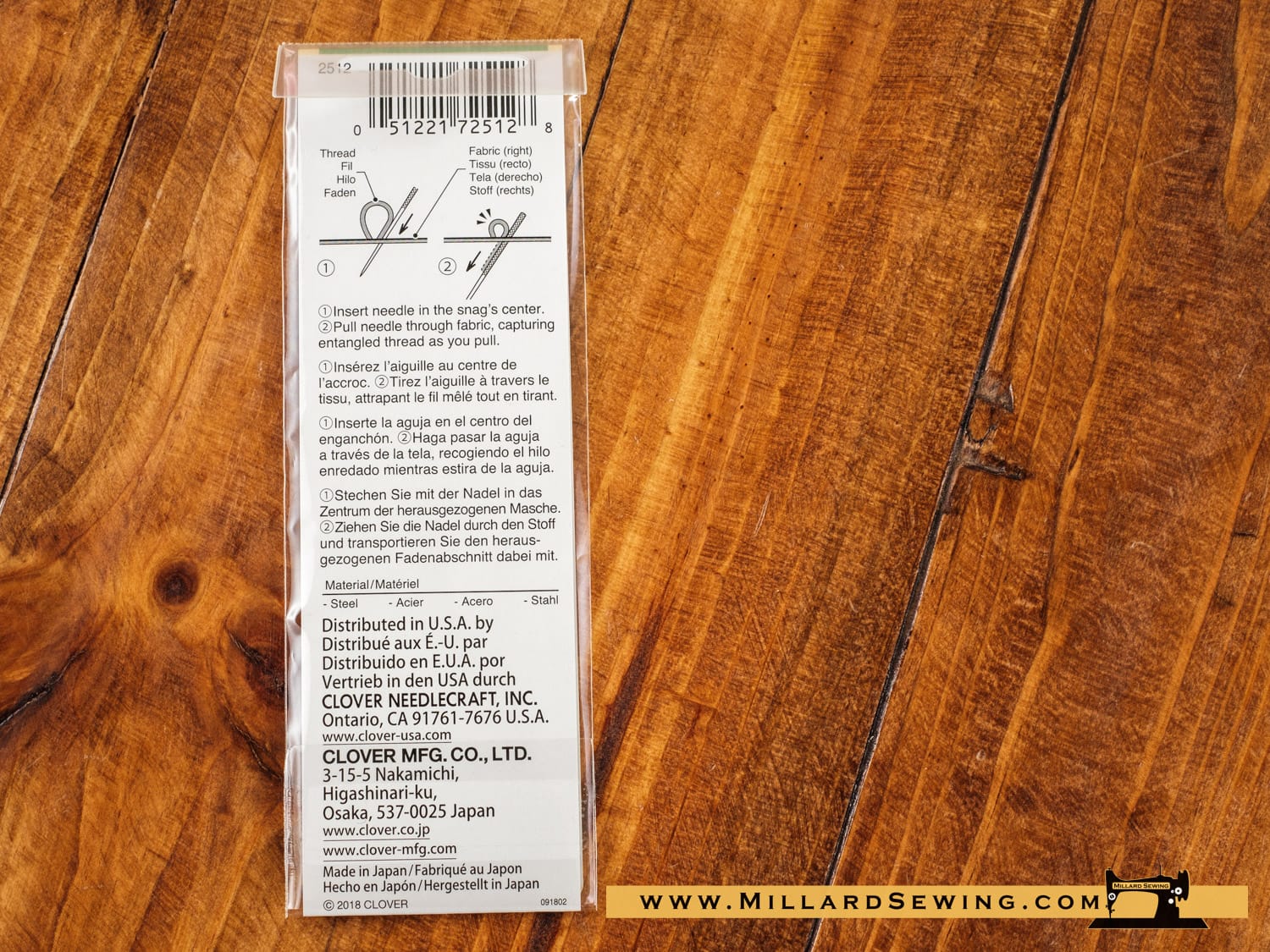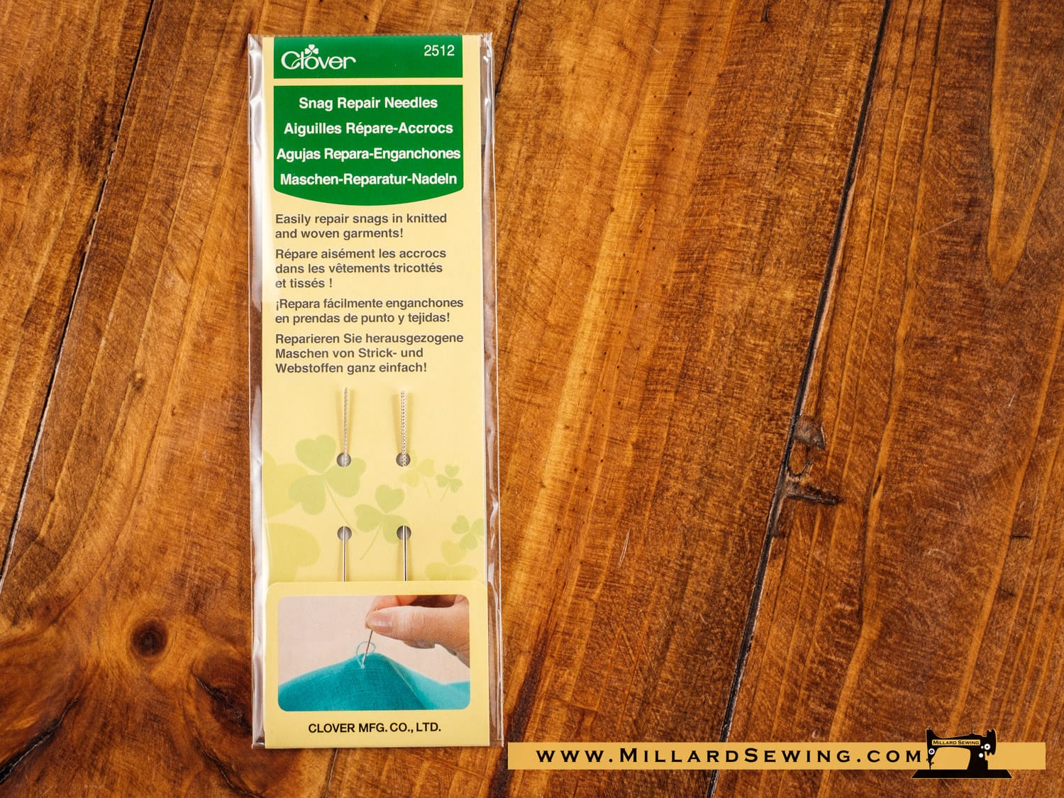 Clover’s Snag Repair Needles are the perfect way to repair fabric snags. Each needle has a slightly rounded point to make quick work on both woven or knit fabrics. The textured ends of the needles easily grip loose threads and pull them through to the hidden side of the fabric. Snag Repair Needles work on cottons, linens, silks, synthetic fibers and blends. Individual packages contain two steel repair needles.