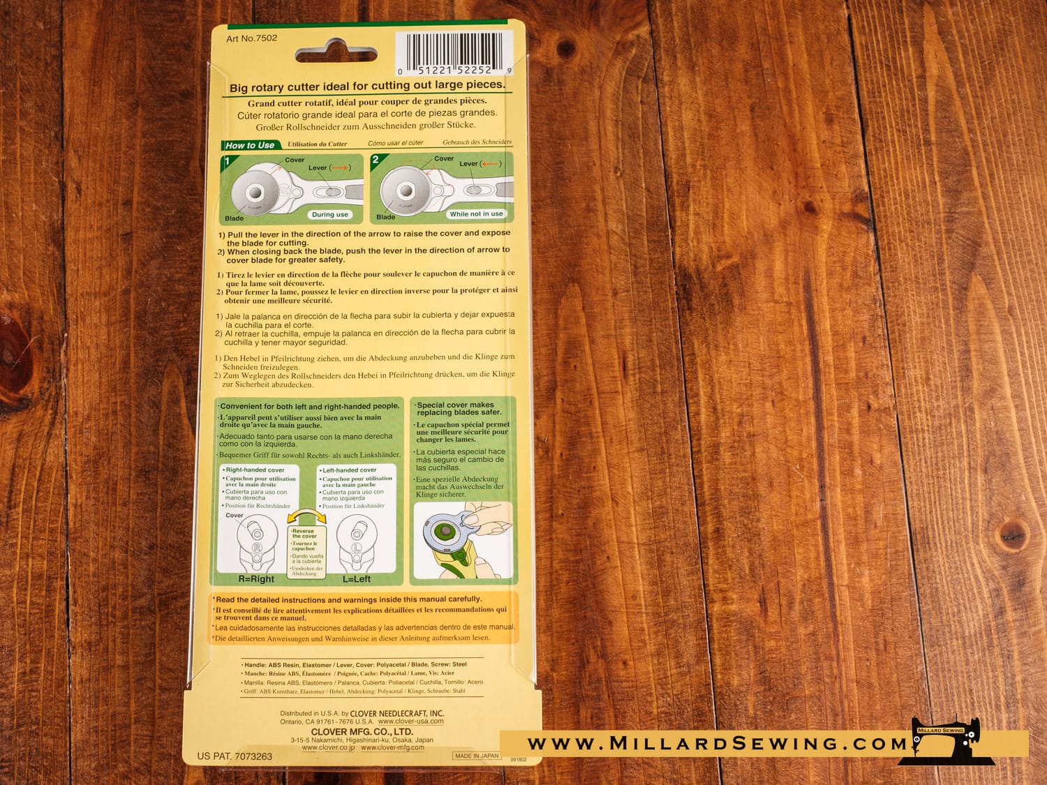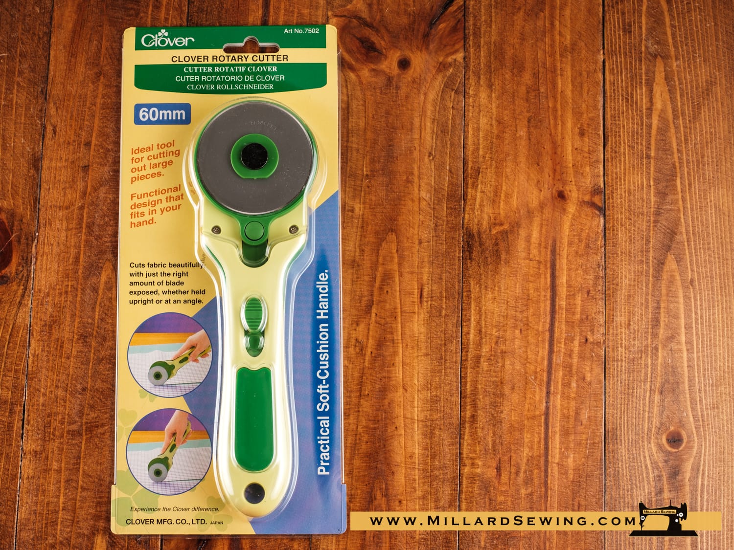 No need to stand when using your rotary cutter. Clover has a unique way of exposing the blade that allows you to cut from a sitting or standing position. The slender handle is designed for a woman’s hand and has rubber padding that provides extra control and a comfortable grip. Easily sets up for right and left hand use. 60 mm blade.