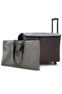 This roller case was built specifically for the Janome Continental M17 Professional Embroidery, Sewing and Quilting Machine, and has a variety of features to make transporting the machine easier.
