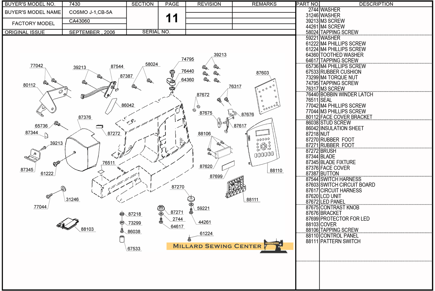 - Singer 7430 Diagram #11 Assembly Includes: