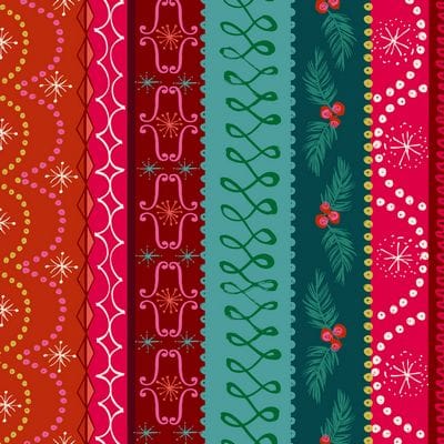 Candy Cane Christmas by Helen Black for Dashwood Studio. Celebrate the season with the Candy Cane Christmas. A vibrant celebration of festive cheer and cosy winter motifs. Featuring whimsical Christmas stockings, intricately wrapped gifts, and traditional yuletide elements, all adorned in a rich palette that encapsulates the warmth and joy of the season. 100% quilting cotton.