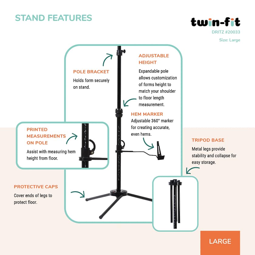 - Pole includes printed measurements and an adjustable 360ยฐ pin hem marker for creating accurate, even hems
