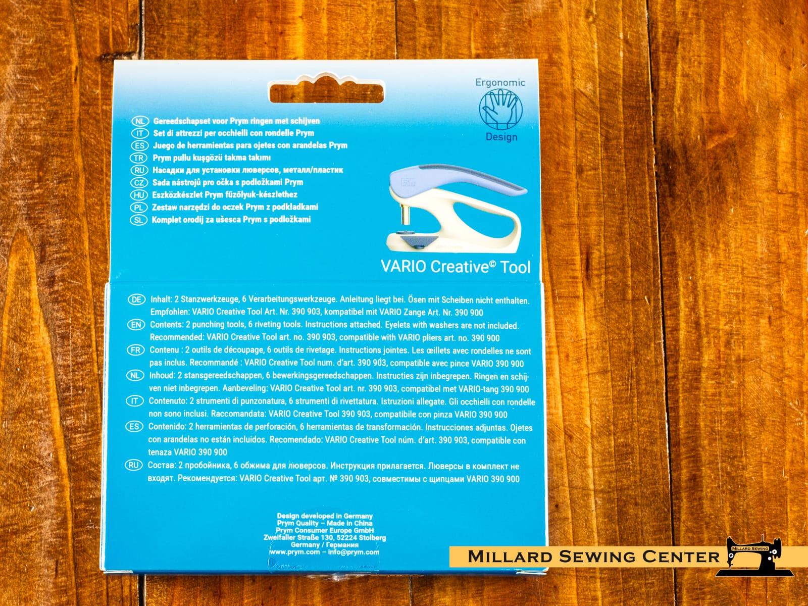 How do I get eyelets into my fabric? This question often arises during sewing projects. The Vario Creative Tool is perfect for attaching eyelets with discs in leather, jeans or other fabrics. Simply insert the high-quality metal and plastic tools into the Vario Use the Creative Tool and the fabric can first be punched and then decorated with the separately available eyelets. The tool set for small eyelets with diameters of 4 mm, 5 mm and 8 mm contains both punching tools for punching and processing tools for attaching the eyelets as well as detailed step-by-step instructions. The tool set can optionally also be used in the Prym Vario pliers (390 900) or the Prym tripod (673 130). To ensure successful use, the tools are color-coded and engraved: The green marking is clearly visible both on the packaging and on the tool sets for Prym eyelets and supports the assignment of the tools to the appropriate consumables (eyelets).