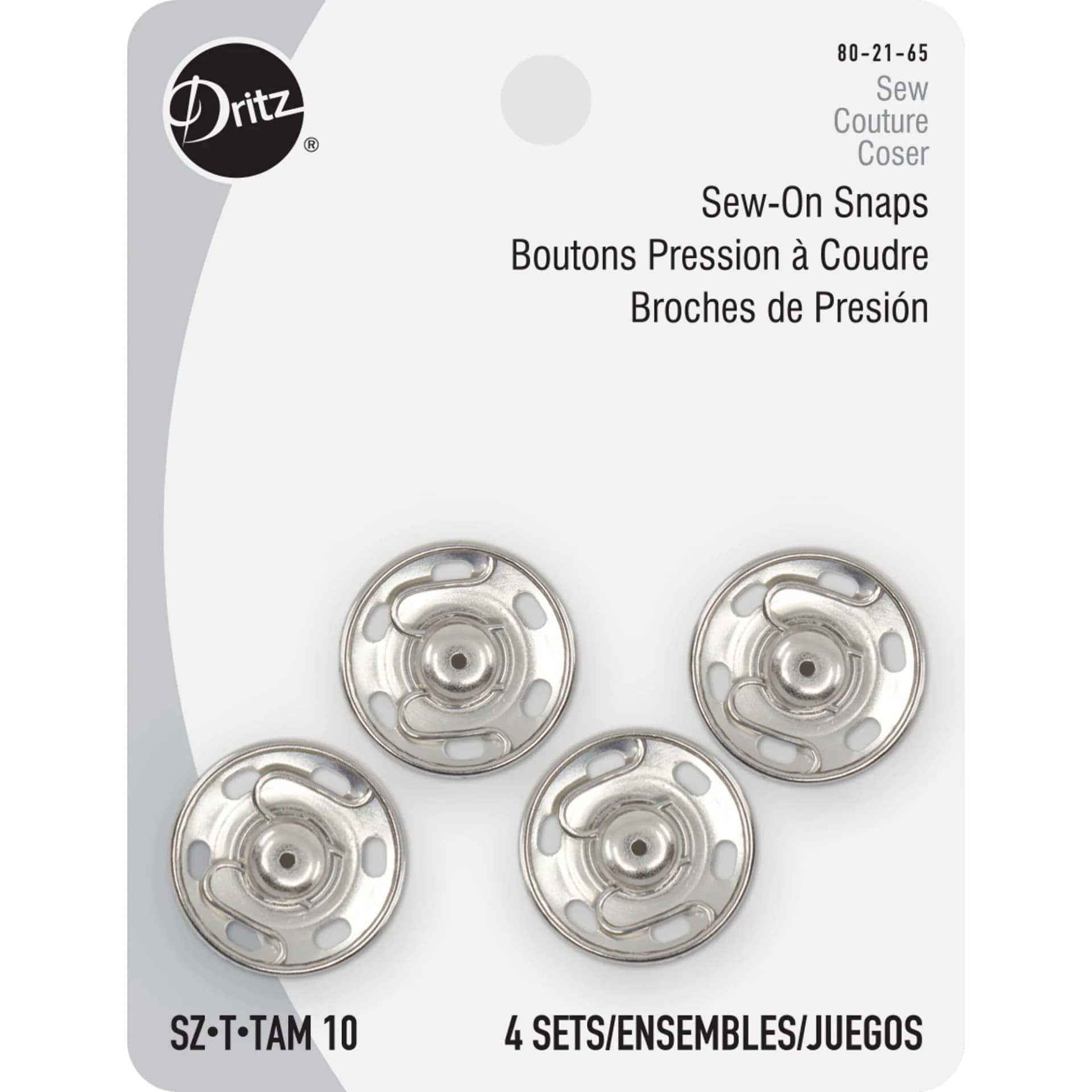 Use the Dritz Size 10 Sew-On Snaps Nickel Pack of 4 as garment closures for your coats, sweatshirts, cardigans and other apparel. This pack includes 4 nickel sew-on snaps, which are made of brass. Crafted for durability and toughness, these sew-on snaps are easy to use and a valuable addition to your sewing kit. Choose from a variety of sizes to suit your specific requirements.