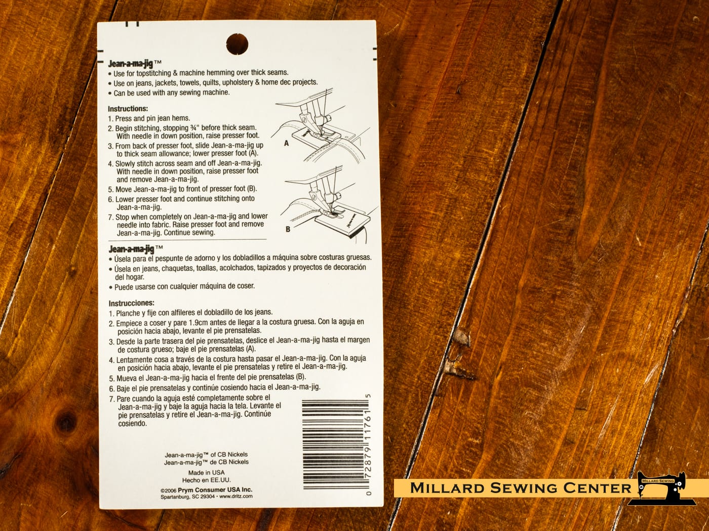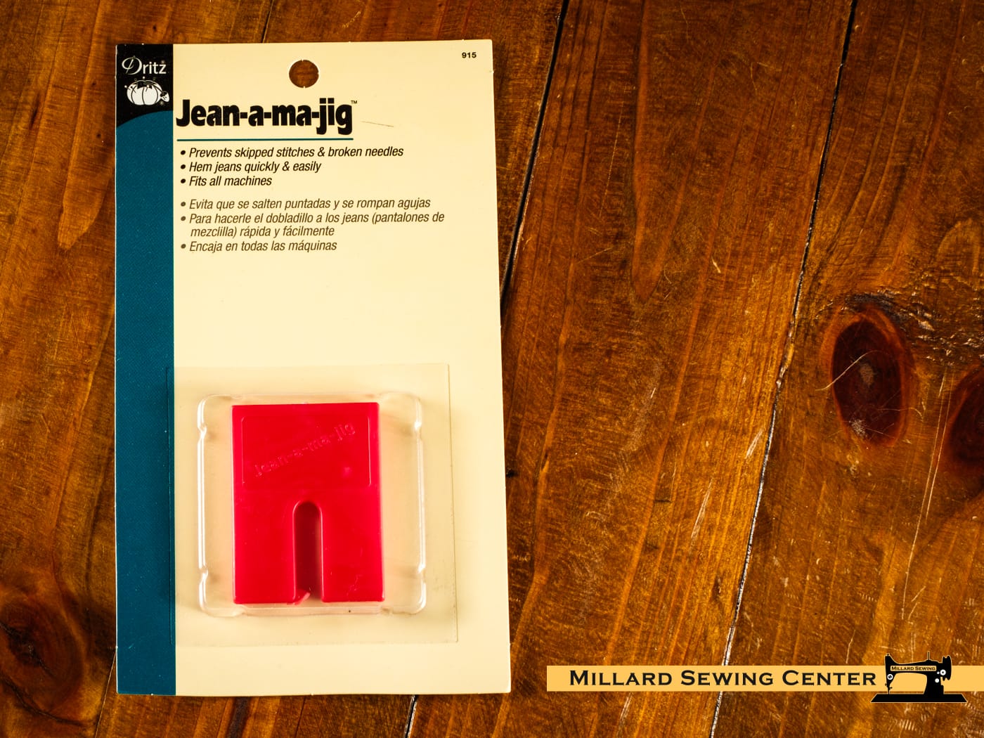 Give the perfect finishing touch to your quilts, towels, jackets and other sewing projects with Dritz Jean-A-Ma-Jig. Fabrics with thick seams can be topstitched and machine-hemmed easily with this efficient tool. It is ideal for hemming jeans with thick flat-fell seams as it prevents broken needles and skipped stitches. This package includes one sleek jean-a-ma-jig which is compatible with all kinds of machines.