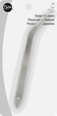 Use tweezers as you thread overlock machines. Angled end on tweezers helps reach into areas with limited space or restricted access. Includes 1 Pair of metal Serger Tweezers.