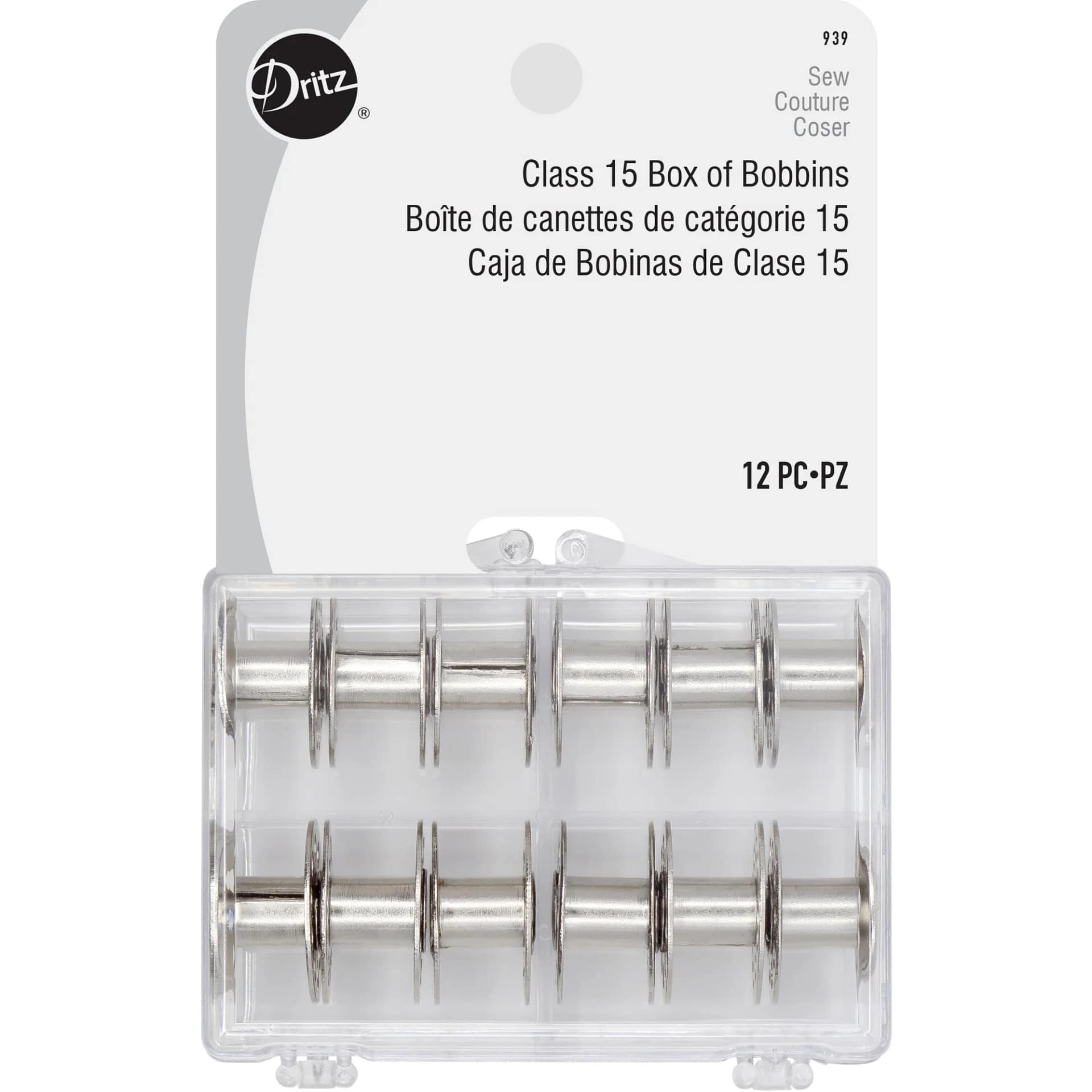 Organize your sewing threads neatly with the Dritz Class 15 Reusable Bobbins. This pack contains 12 Class 15 bobbins in a plastic case that can be used to keep your threads in place when not in use. These metal bobbins are designed to fit in all Singer Class 15 models and machines like Baby Lock, Riccar, Simplicity and White.