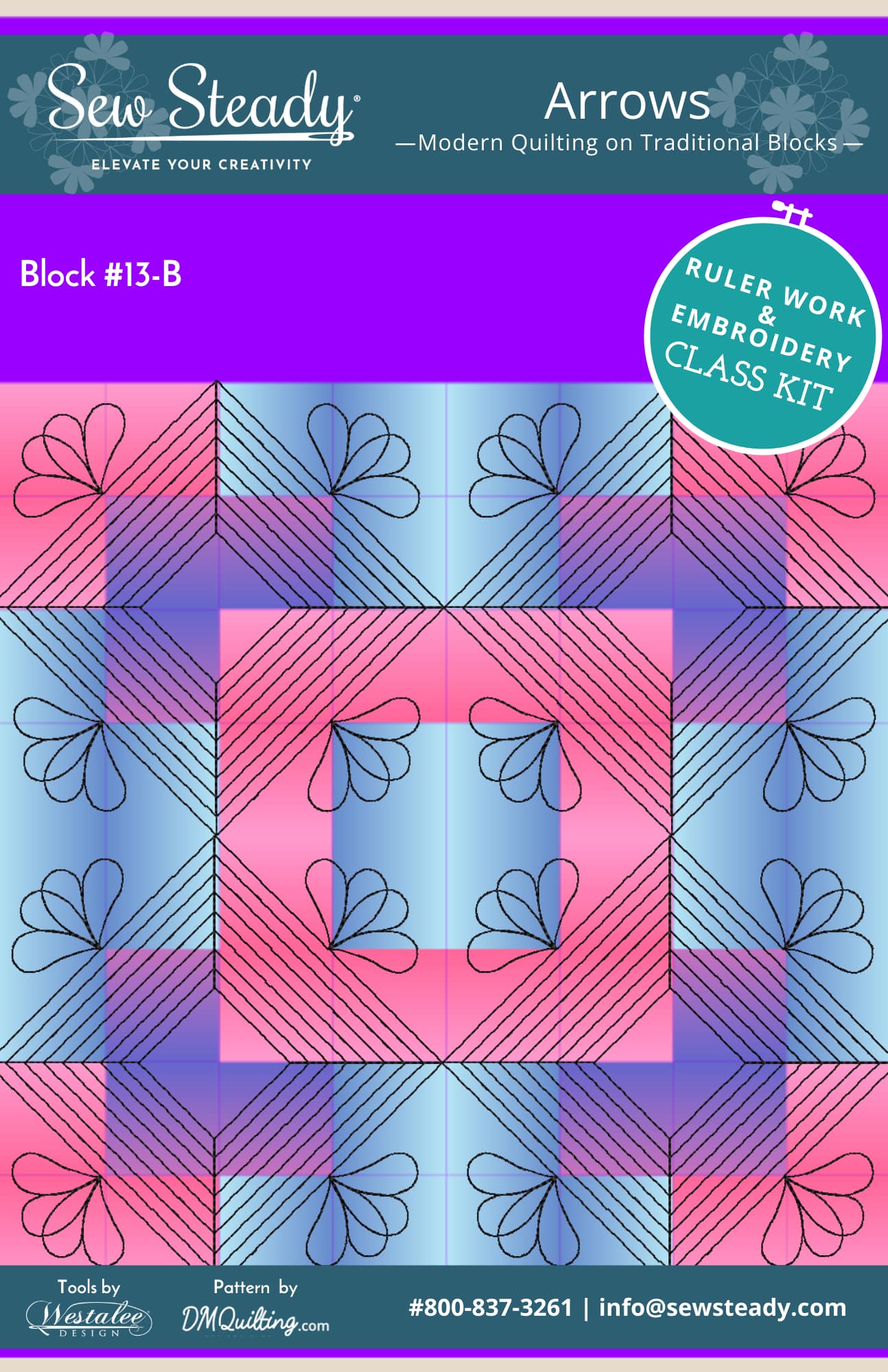 Get 23 unique designs in 5 hoop sizes! A total of 115+ Designs for Quilting in the Hoop designed for Arrow Quilt Projects and other similar designs. The embroidery designs found in our Arrow collection were inspired by the Essence of Tradition project, created by Accredited Teacher Donna McCauley. Donna used a variety of Westalee Design ruler work Templates on this project to showcase what these Templates, all designed by Leonie West, can do when paired with traditional patchwork techniques. Our embroidery look book was created in tandem as a ruler work inspiration guide. This look book will list which quilting template each embroidery design was inspired by.