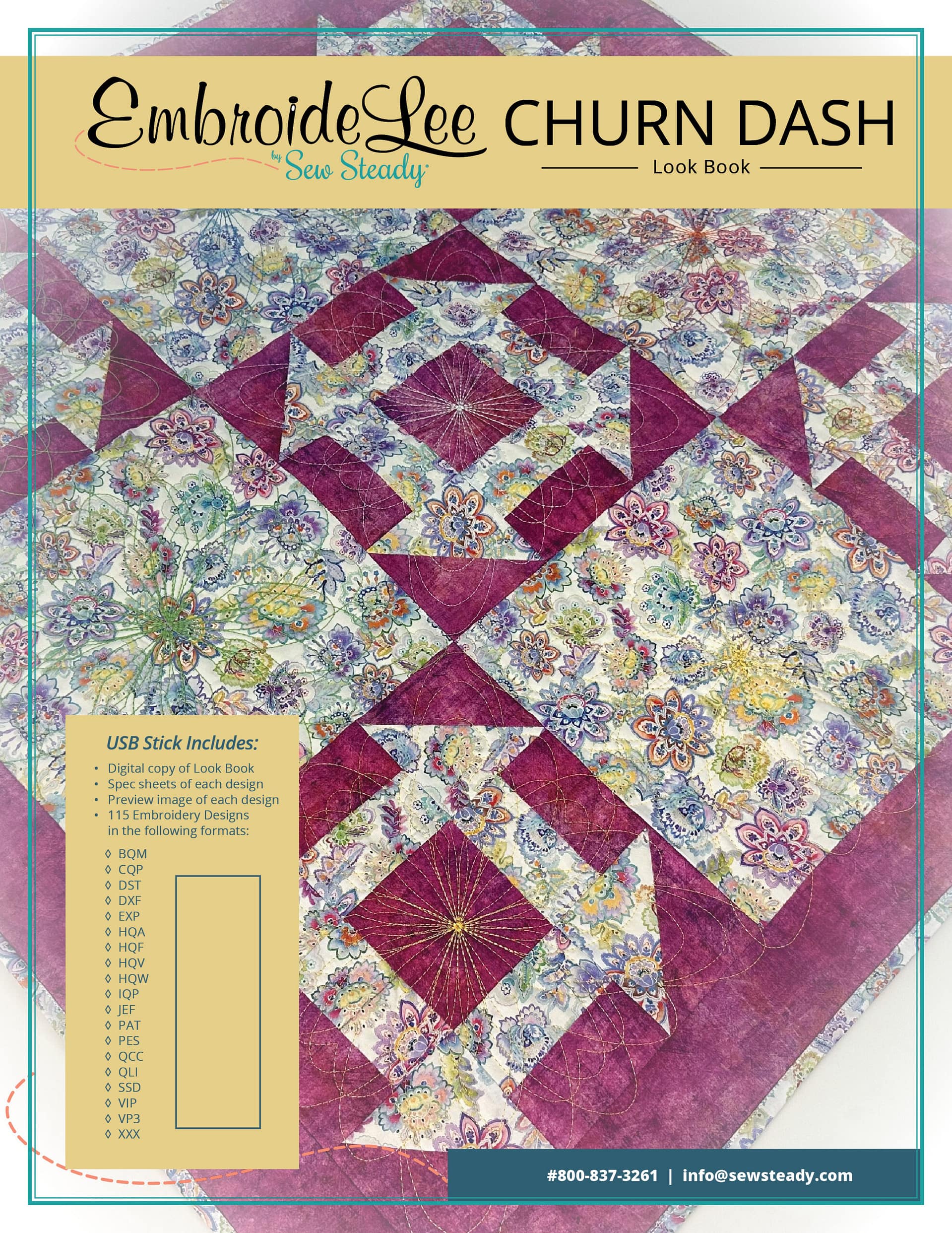 Get 23 unique designs in 5 hoop sizes! A total of 115+ Designs for Quilting in the Hoop designed for Churn Dash Quilt Projects and other similar designs. The embroidery designs found in our Churn Dash collection were inspired by the Essence of Tradition project, created by Accredited Teacher Donna McCauley. Donna used a variety of Westalee Design ruler work Templates on this project to showcase what these Templates, all designed by Leonie West, can do when paired with traditional patchwork techniques. Our embroidery look book was created in tandem as a ruler work inspiration guide. This look book will list which quilting template each embroidery design was inspired by.