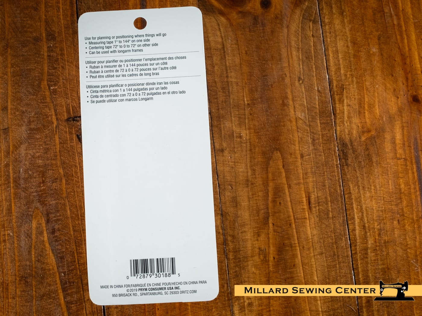 Dritz Longarm Zero Center Tape Measure. This tape measure is great for planning or positioning where things will go. One side has standard markings going from 0 to 144 inches; while the other side starts at 72 goes down to 0 then back up to 72 (inches). It is flexible and has a width of 3/4 inch.