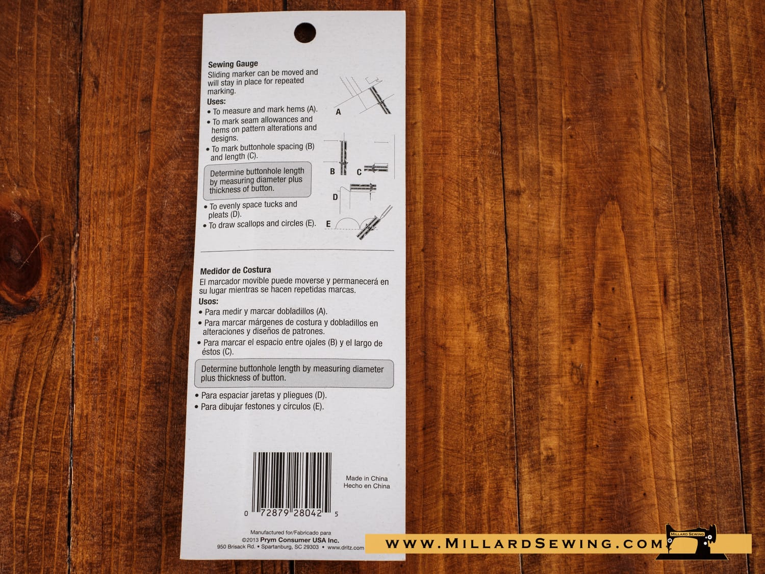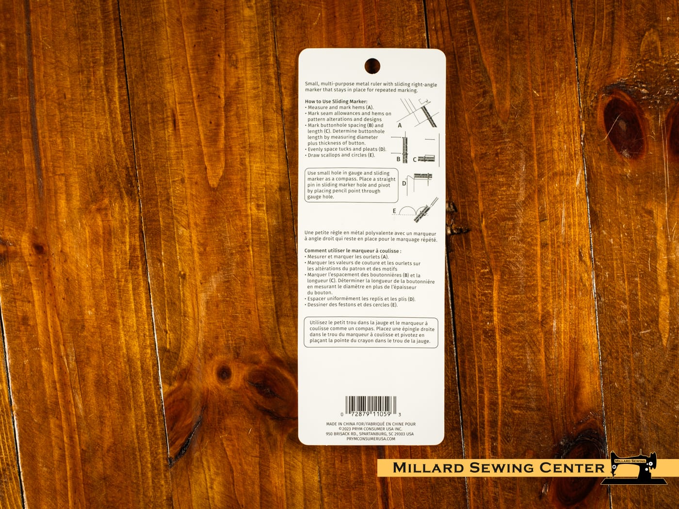 Includes a sliding marker that can be moved and will stay in place for repeated marking. Use to measure and mark hems mark seam allowances and hems on pattern alterations and designs, mark buttonhole spacing and length determine buttonhole length (by measuring diameter plus thickness of button); evenly space tucks and pleats; or to draw scallops and circles.