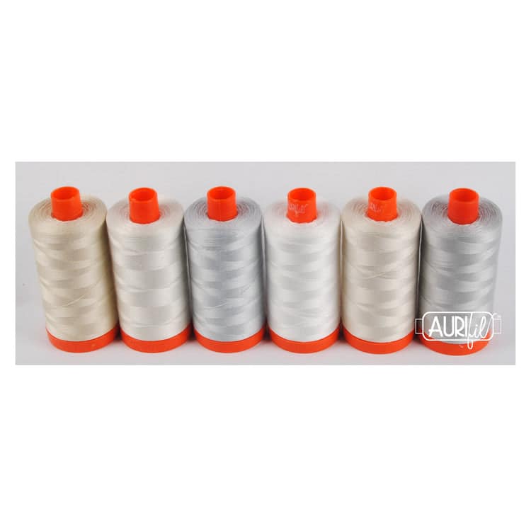 This thread collection boasts Eleanor’s top 6 go-to neutrals in our 50wt cotton thread. From natural white to dove, neutral threads are the standard for any sewing room and allow fabrics to pop and complement in quilt design. Includes Colors: