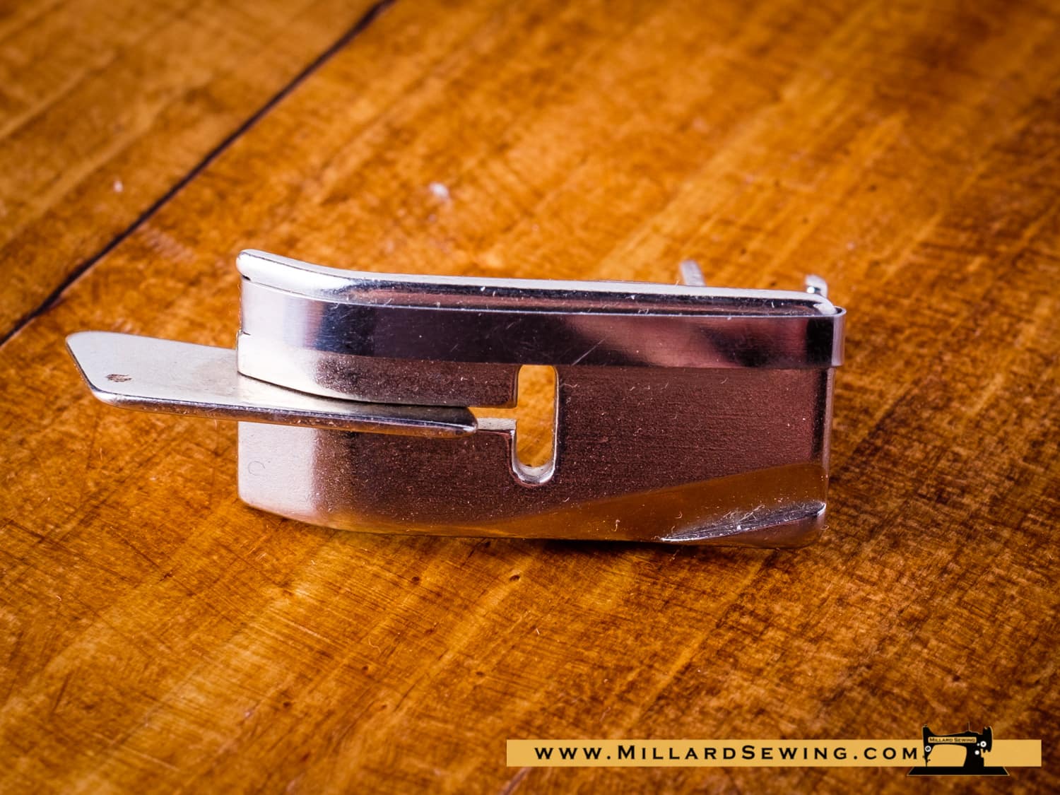 Blind stitch foot for an Elna, for hems on woolen materials, heavy materials & medium materials, and on linen. Swiss made. Low shank presser foot. Want an invisible hemline? No matter the fabric weight, the adjustable guide on the foot helps ensure that the needle catches only one or two fibers of the hem. Adjust the guide for precision topstitching, edge stitching or pintucking.
