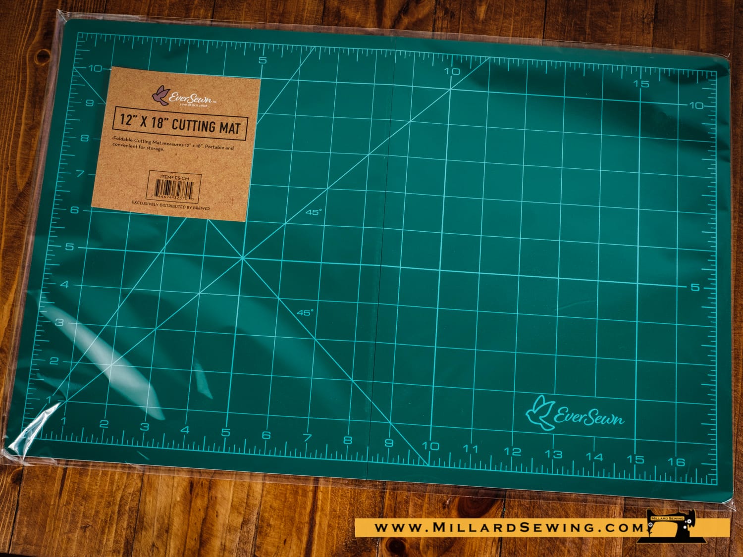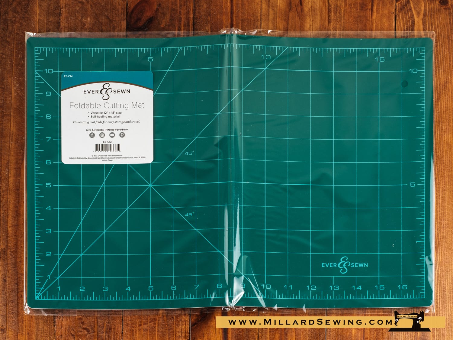 Eversewn Foldable Cutting Mat is 12″x18″, in green. This mat folds away for easy storage, it’s portable for on the go, it’s over a great cutting mat.