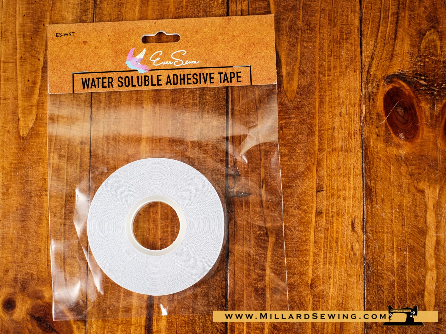 This environmentally friendly tape dissolves easily in water and leaves no adhesive residue on fabric. Use it to hold seams or hems together before stitching.