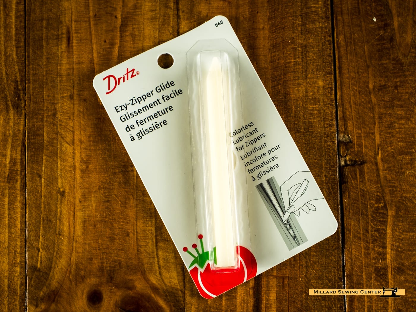 Dritz Ezy-Zipper Glide is a colorless lubricant used to help zippers, windows and drawers open and slide easier. Open and close to see if additional lubricant is needed.
