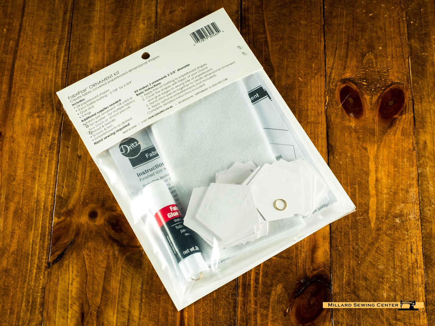 - Includes: 24 pre-cut paperboard shapes, 3 pieces fusible batting (5-7/8″ X 6-3/4″), 1 glue stick, 2 rings (10 mm), instruction sheet, pattern sheet