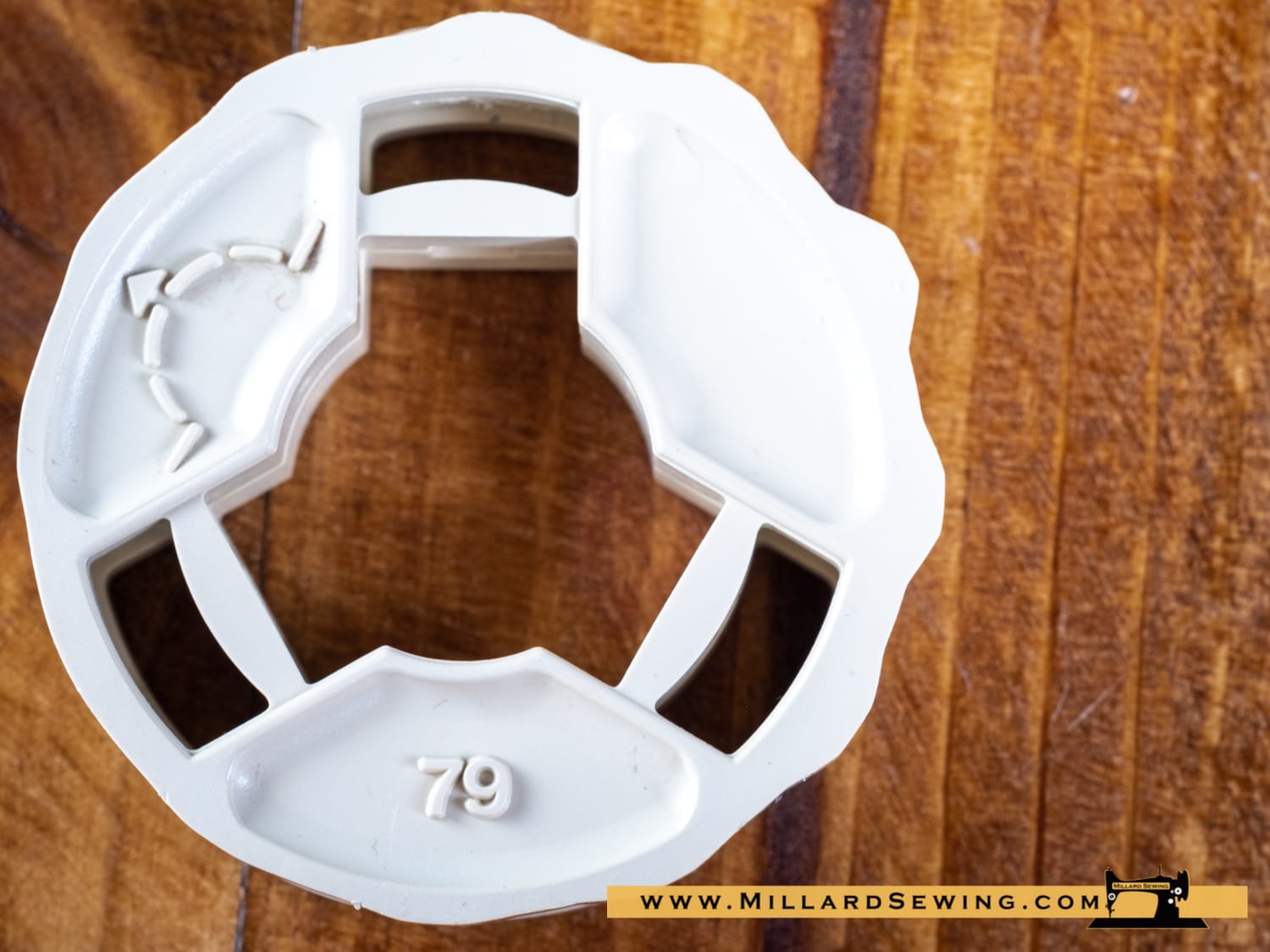 Vintage original 1970’s Singer White Flexi Stitch 2-sided Cam Fashion Disc #79/80 sewing machine accessory is in very good used condition. Cam stitches both the Scallop stitch and a Icicle stitch. Cam type F works with the Singer Futura series sewing machines 900 & 920.