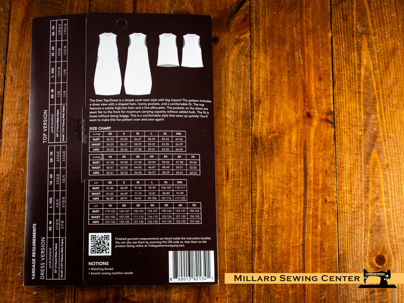 The Dew Top/Dress is a simple cowl neck style with big impact! The pattern includes a dress view with a shaped hem, roomy pockets, and a comfortable fit. The top features a subtle high-low hem and a line silhouette. The pockets on the dress are sewn flat to the front for maximum carrying capacity without added bulk. The fit is loose without being baggy. This is a comfortable style that sews up quickly! You’ll want to make this fun pattern over and over again!