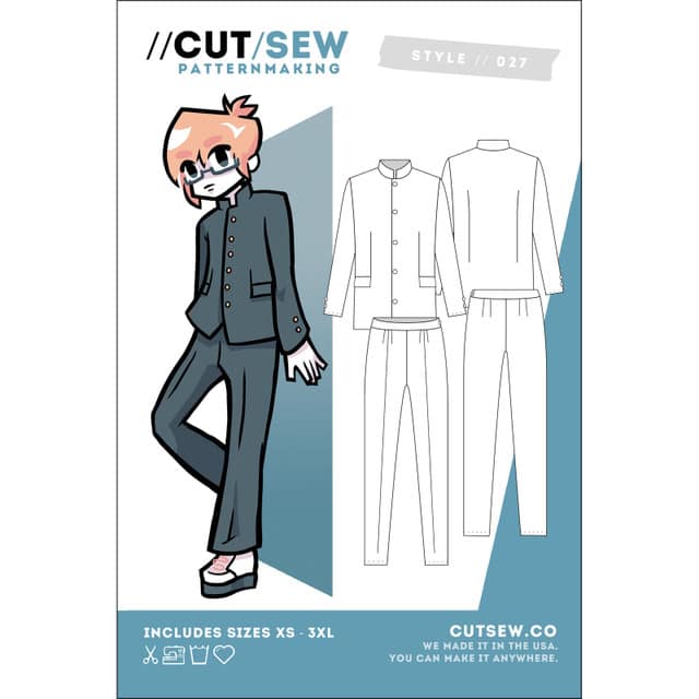 Our school boy uniform pattern is designed like the Japanese-style gakuran, meaning the sky’s the limit when it comes to cosplaying your favorite sweet, sweet anime boys. The jacket features two faux-front pockets, a built in interlining for more structure, and a button front closure, while the pants feature an easy to sew side seam zipper rather than a front fly. Our unisex line of patterns are crafted for broader bodies with wider shoulders and longer torsos. Adjustment instructions are included with every pattern to modify each look to your unique body type.