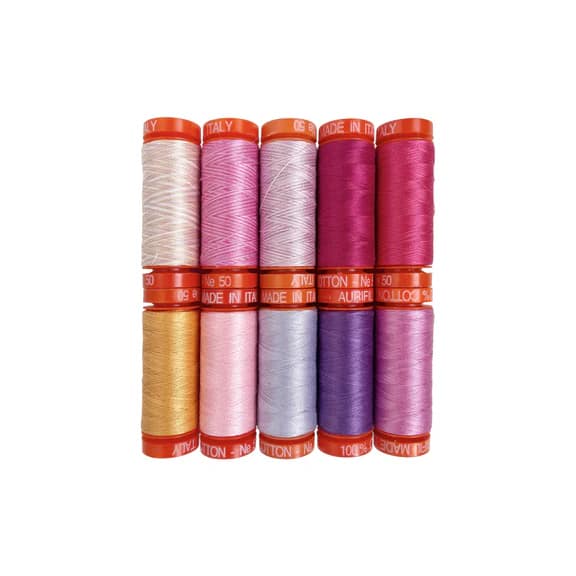 The centerpiece of the 2025โ2026 Hoffman Challenge is a stunning new batik collection featuring 15 brilliant fabrics in vibrant shades of pinks and purples. Participants must use at least 5 of the 15 featured batiks and are encouraged to enhance their entries with threads from the coordinating Aurifil thread setโten small spools of 50wt thread in a complementary palette of pinks, purples, and blues.