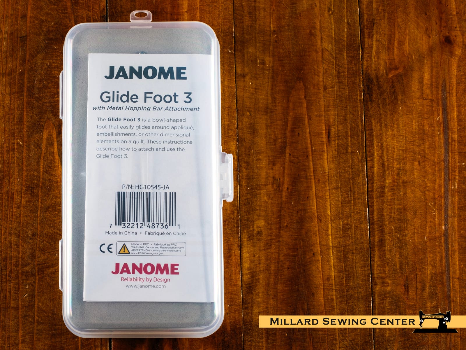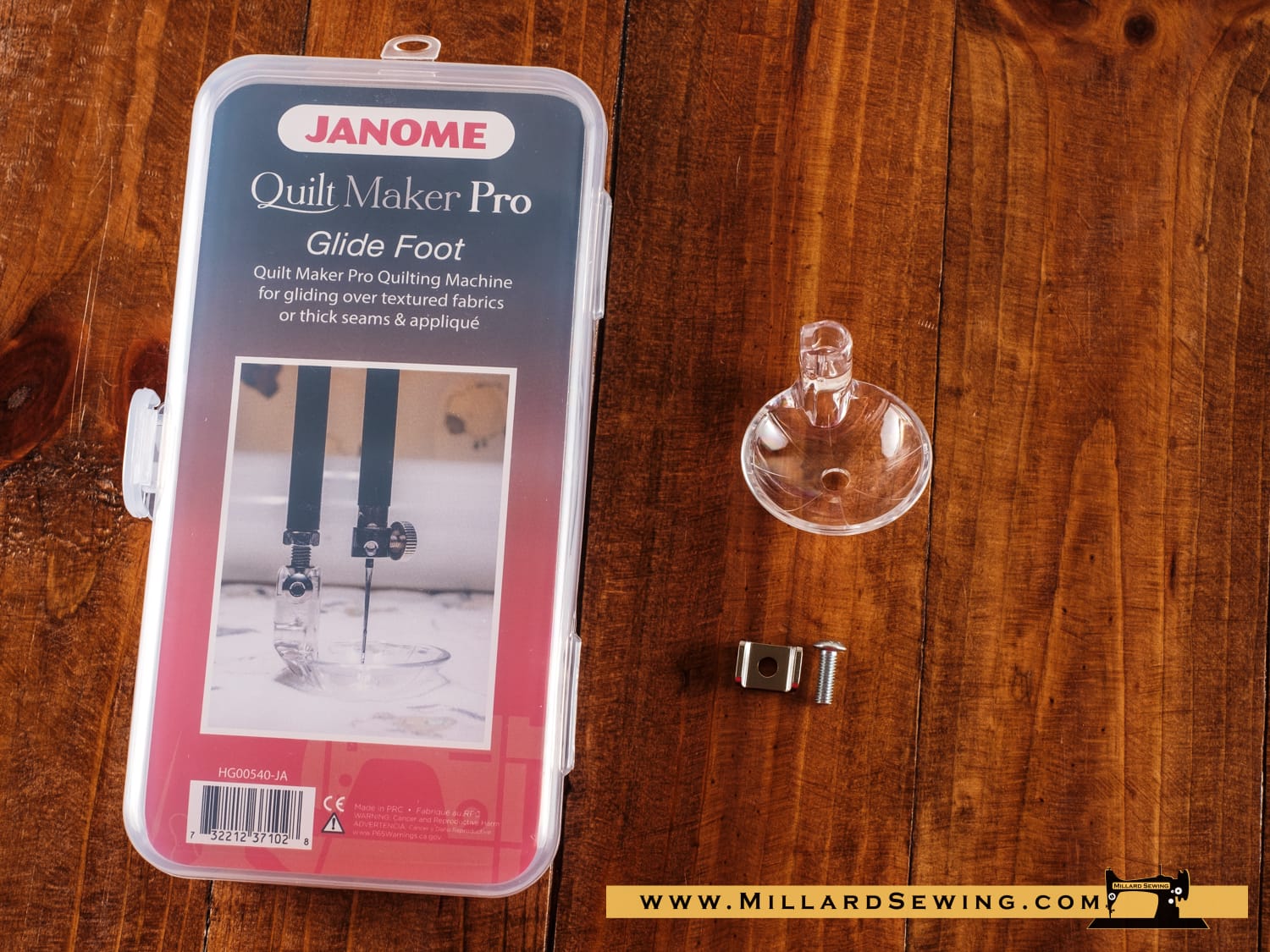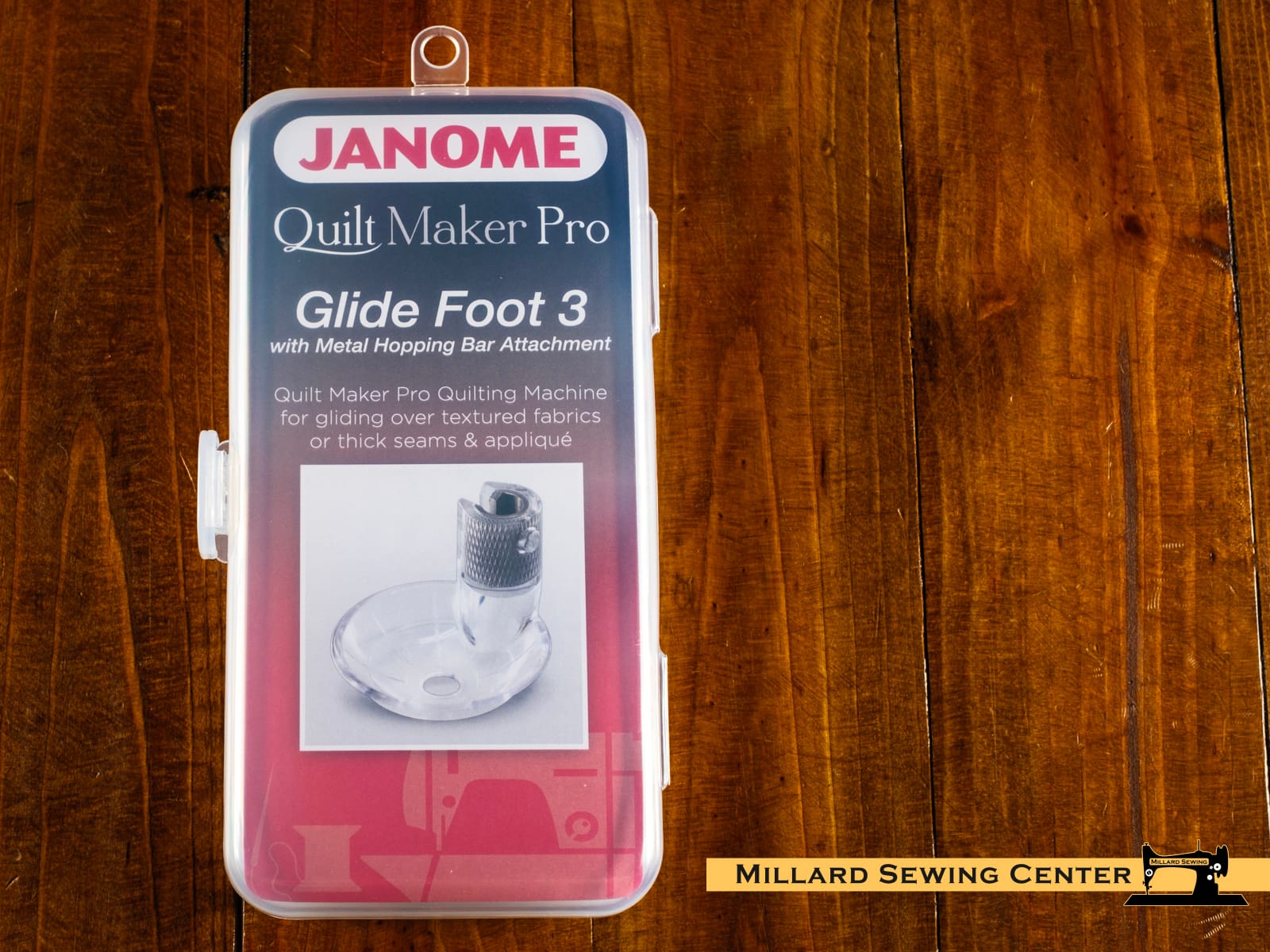 The Glide foot is a bowl shaped foot perfect for using with rulers and for quilting on an uneven fabric such as heavily textured or appliqued quilt tops.ย Compatible with all Quilt Maker machines with Interchangeable Foot Mount.