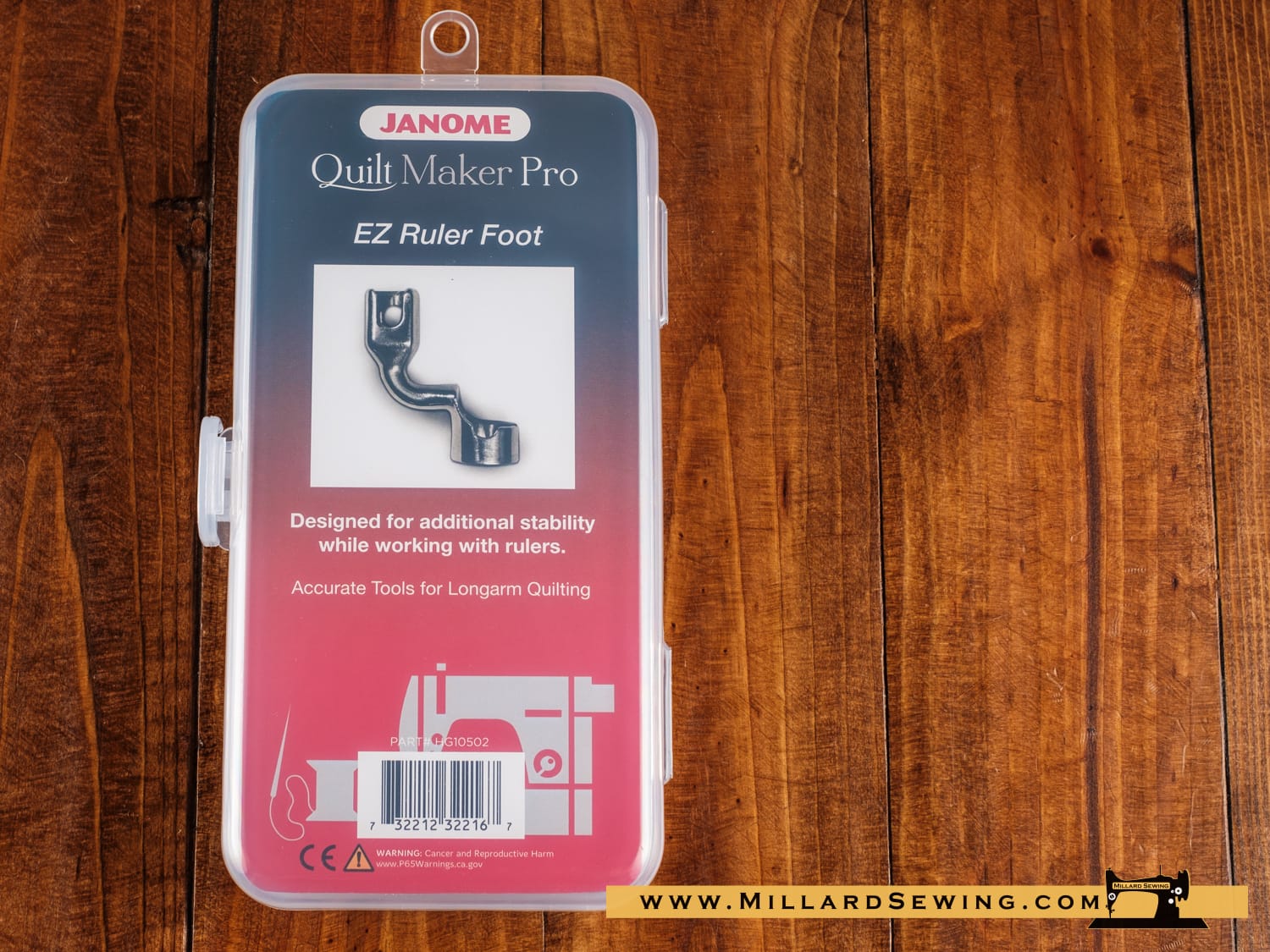 The EZ Ruler Foot or Sure Foot has a taller profile than the standard ruler foot and provides additional stability when using rulers. This Ruler Foot is also useful when quilting with high loft batting or multiple layers of batting.