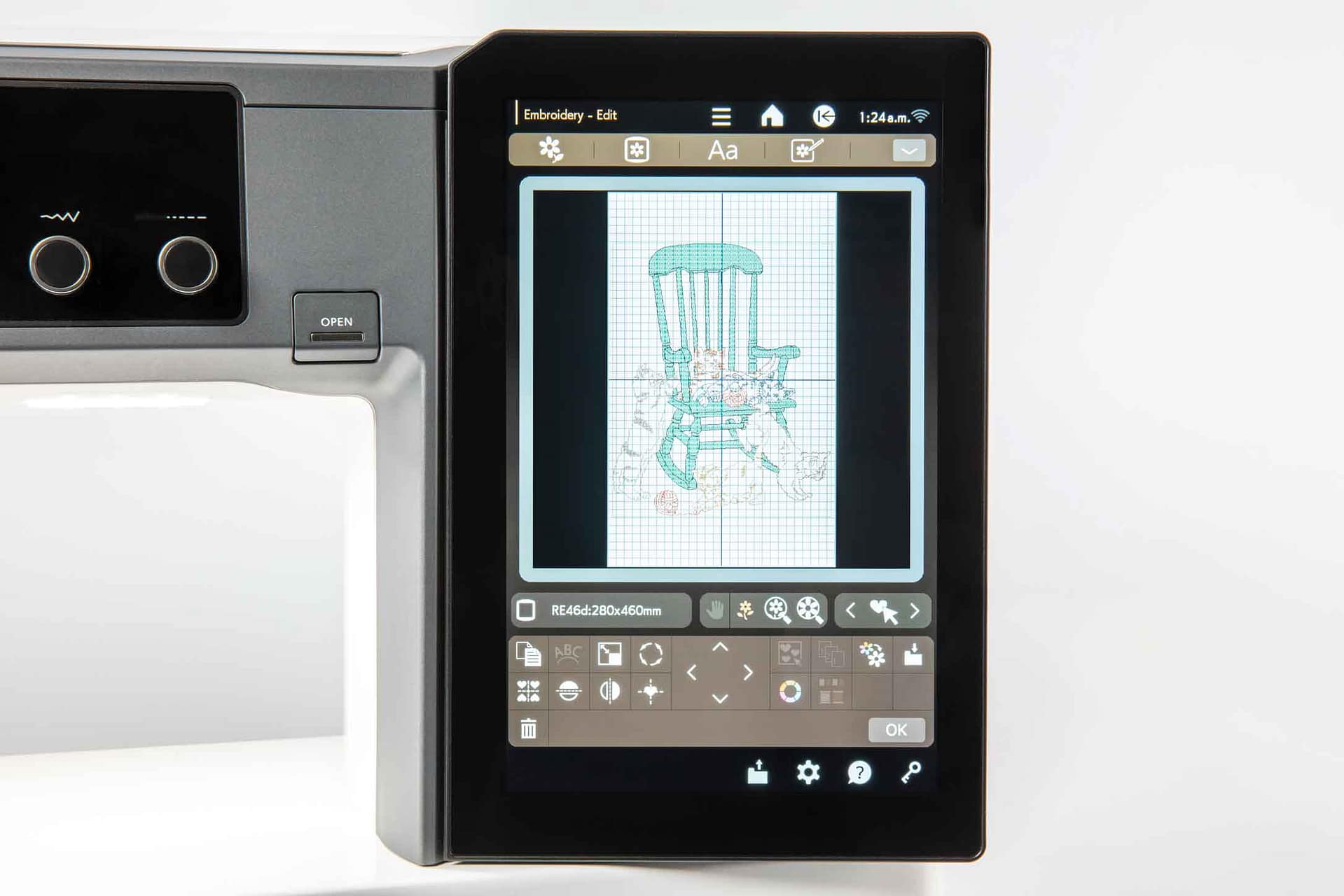 - Maximum embroidery size: 11” x 18.1” (280mm x 460mm)
