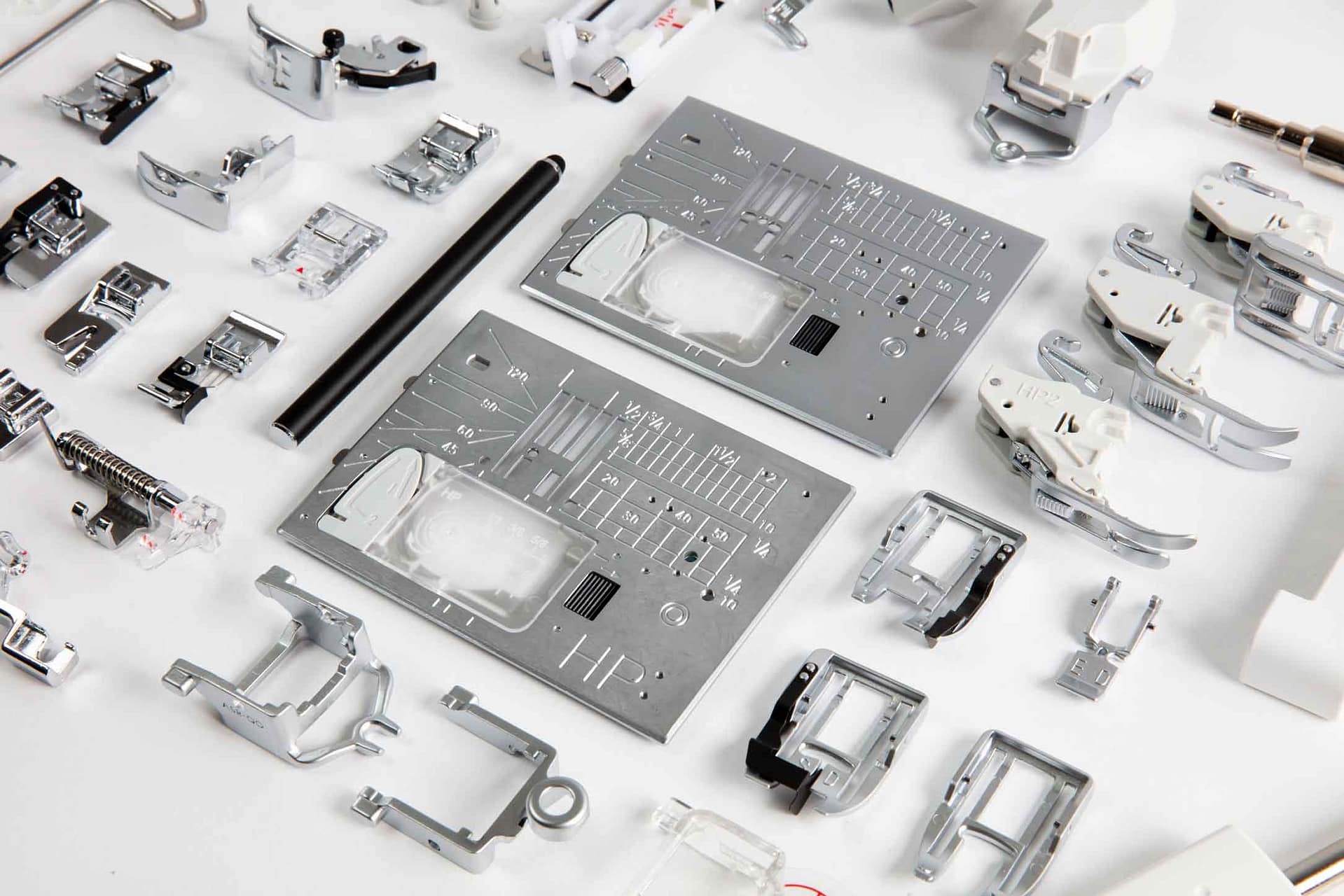 - HP Foot and Needle Plate System for superior Scant 1/4” seam