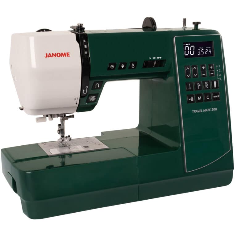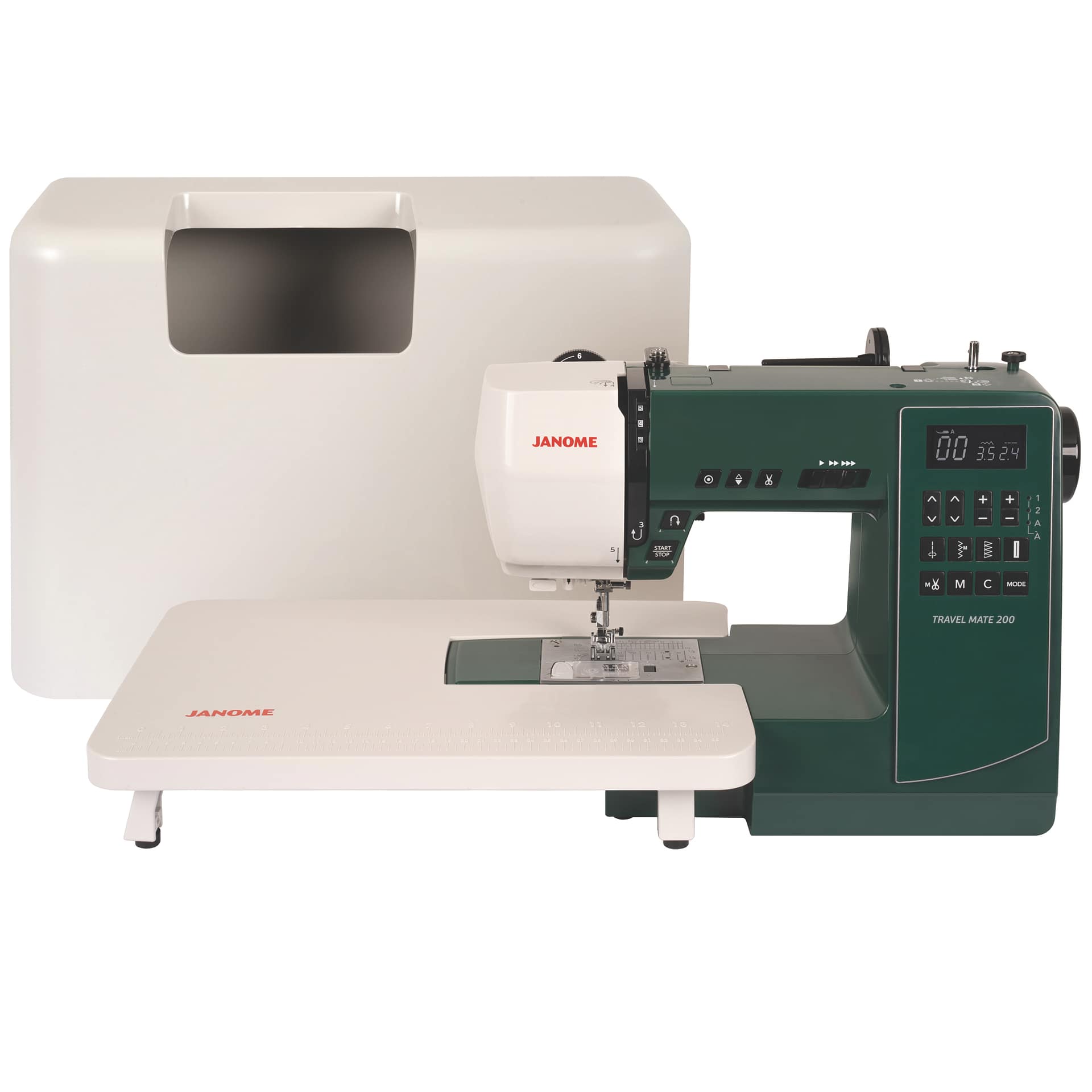 Theย Janome Travel Mate 200ย computerized sewing machine offers an incredible Travel machine with a wideย selection of quilting and applique stitches, a programmable block alphabet perfect for personalizing projectsย and quilt labels. An automatic Thread Trimmer, Hard Cover, and Extension Table are also includedโฆ plus aย Bonus Quilting Kit!