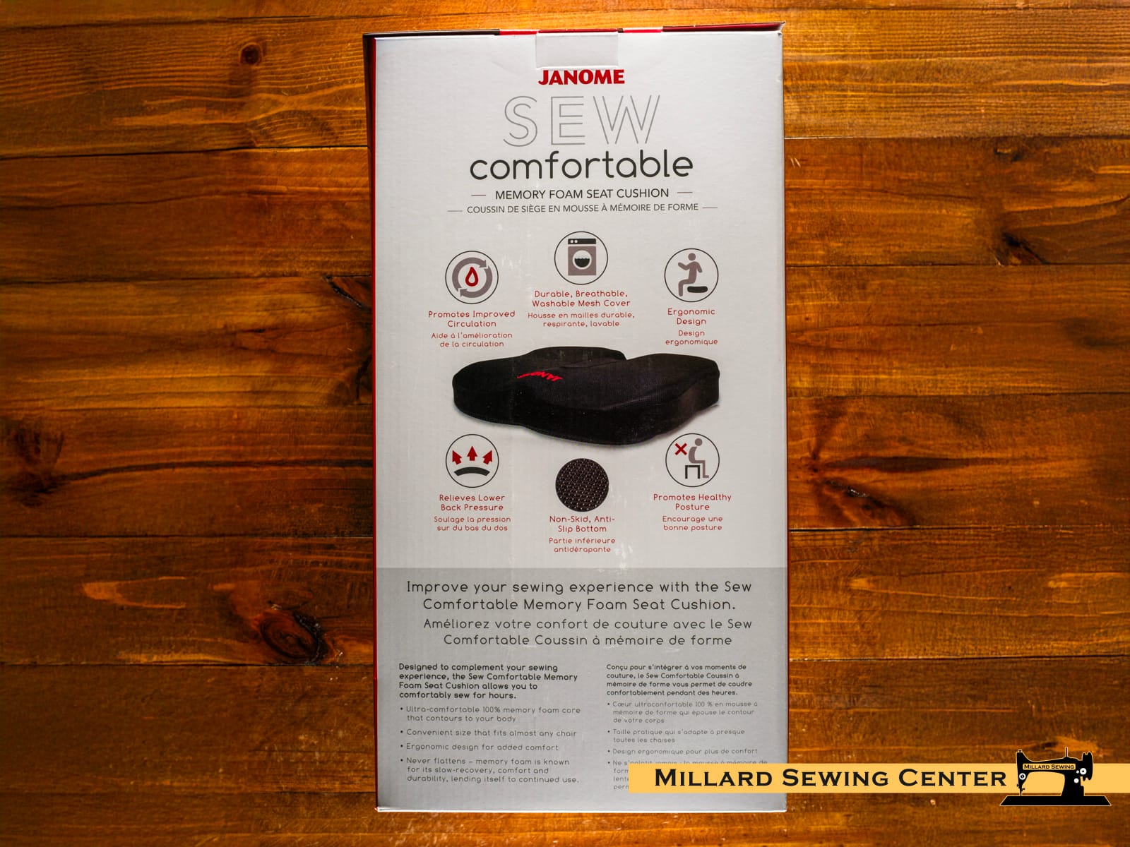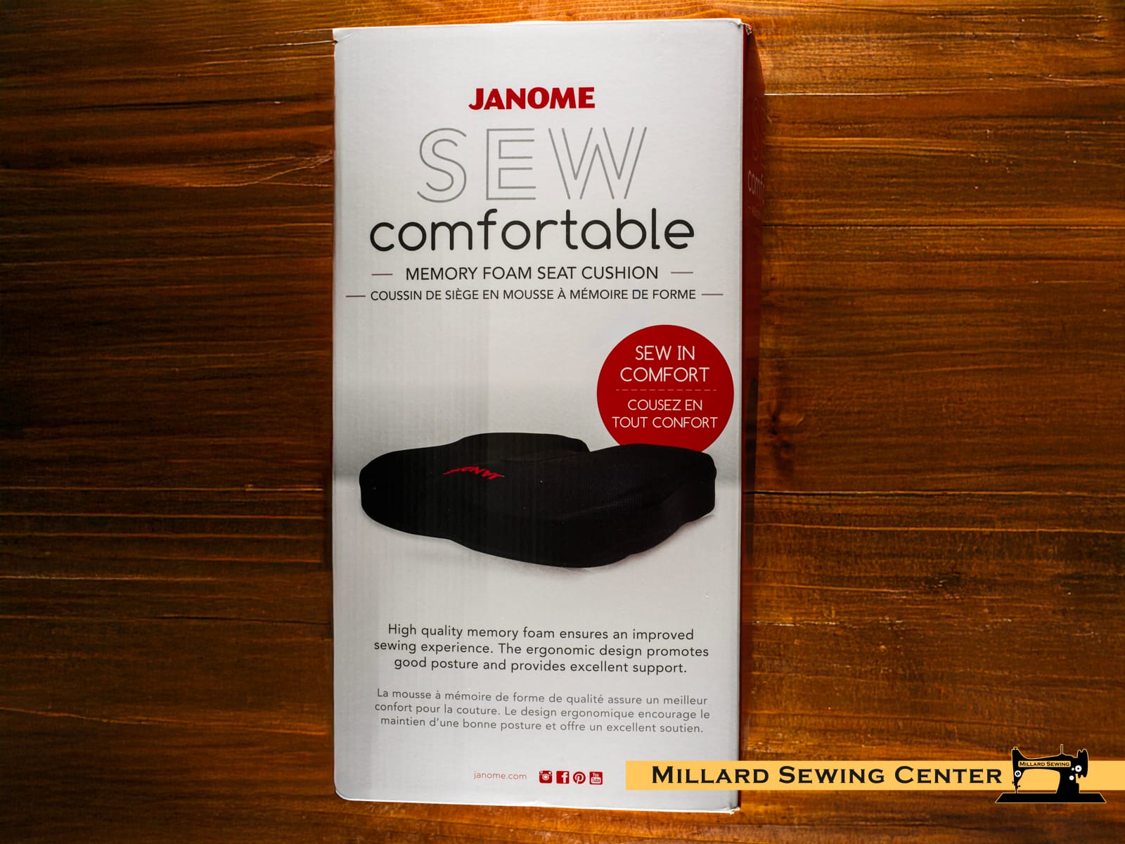 Enhance your sewing experience with the Sew Comfortable Seat Cushion and Lumbar Support. Janomeโs Sew Comfortable line of Memory Foam products provide extra strength and support, as well as feature an ergonomic design that promotes good posture, ensuring your comfort.