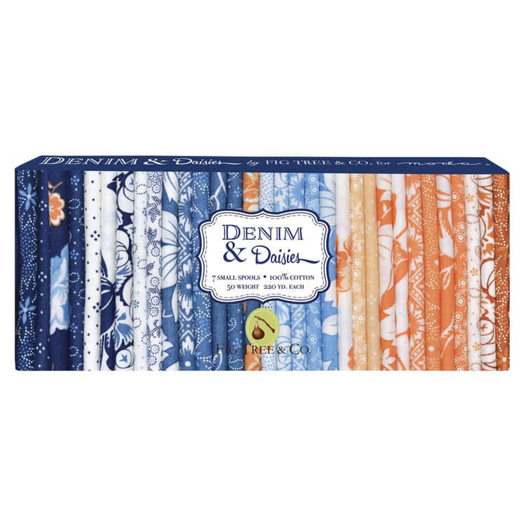 Joanna’s latest curated set pulls coordinating hues from her Denim & Daisies collection for Moda Fabrics. Seven perfect spools for all sorts of Summer stitching!