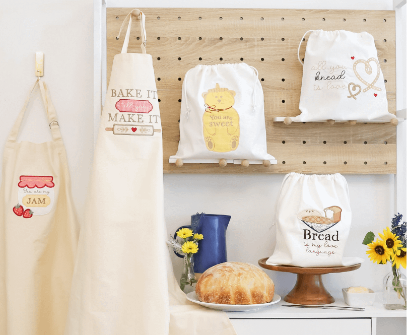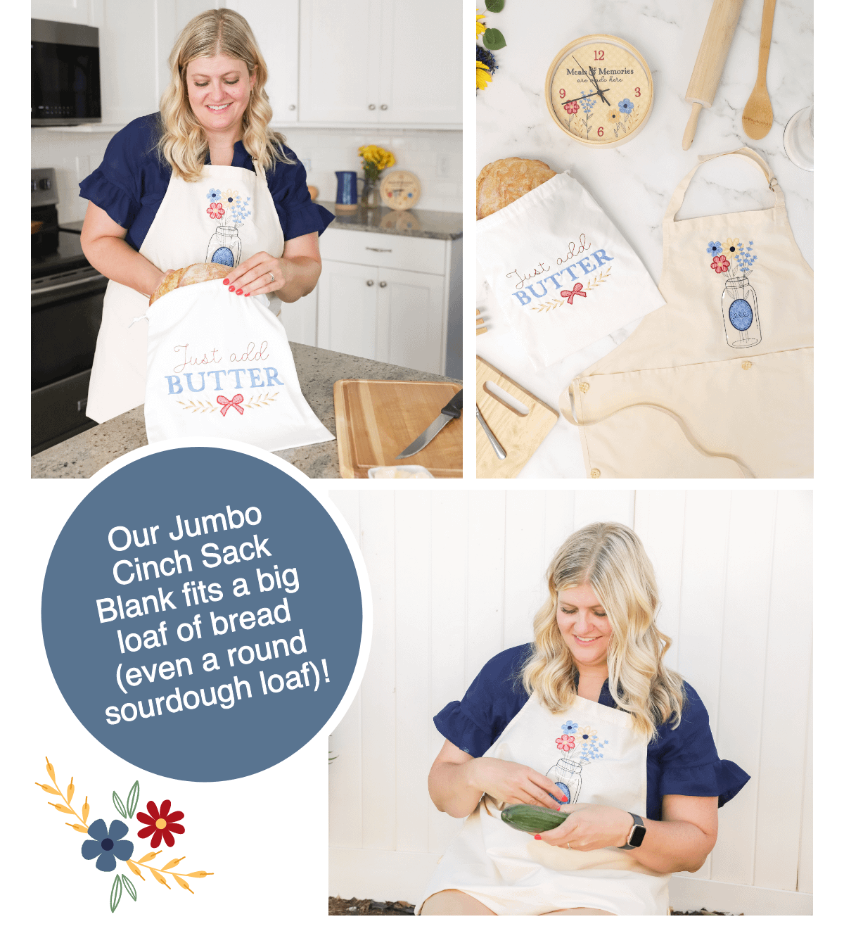- The Just Add Butter Cinch Sack:ย (As mentioned above!) The ideal, embroidered bread bag for gifting your homemade loaves or storing your own.