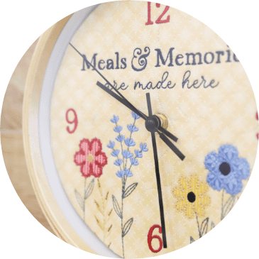 - The Meals & Memories Clock:ย An embroidered clock celebrating family, food, and friendship โ a perfect focal point for any kitchen.
