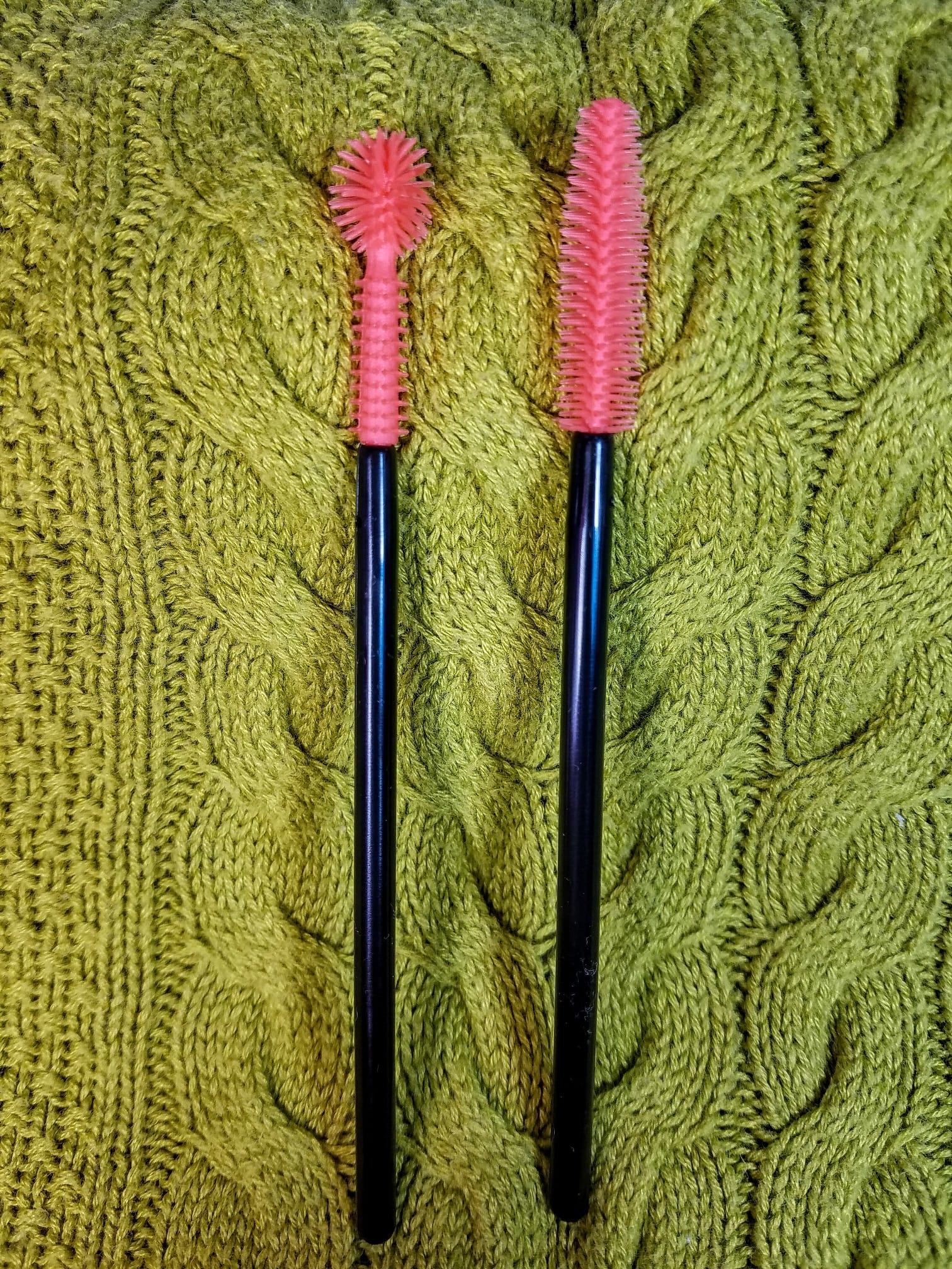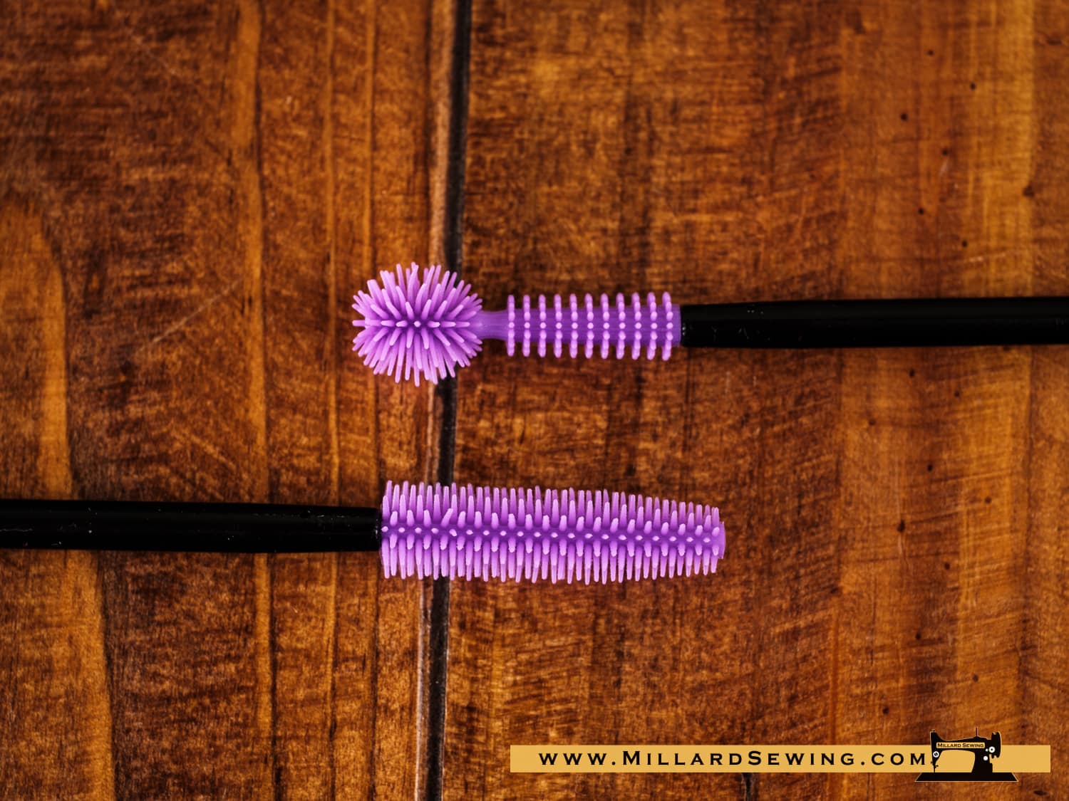 These little wonders are just better than the cleaning brushes youโre using now. The silicone heads have bristles that are molded on, so you wonโt lose one in your machine. The heads are ultra-flexible to get behind your bobbin case and other nooks where a traditional brush wonโt reach. When the brush gets dirty, wash with a drop of dish soap and warm water, and itโs like new again. Set of 2.