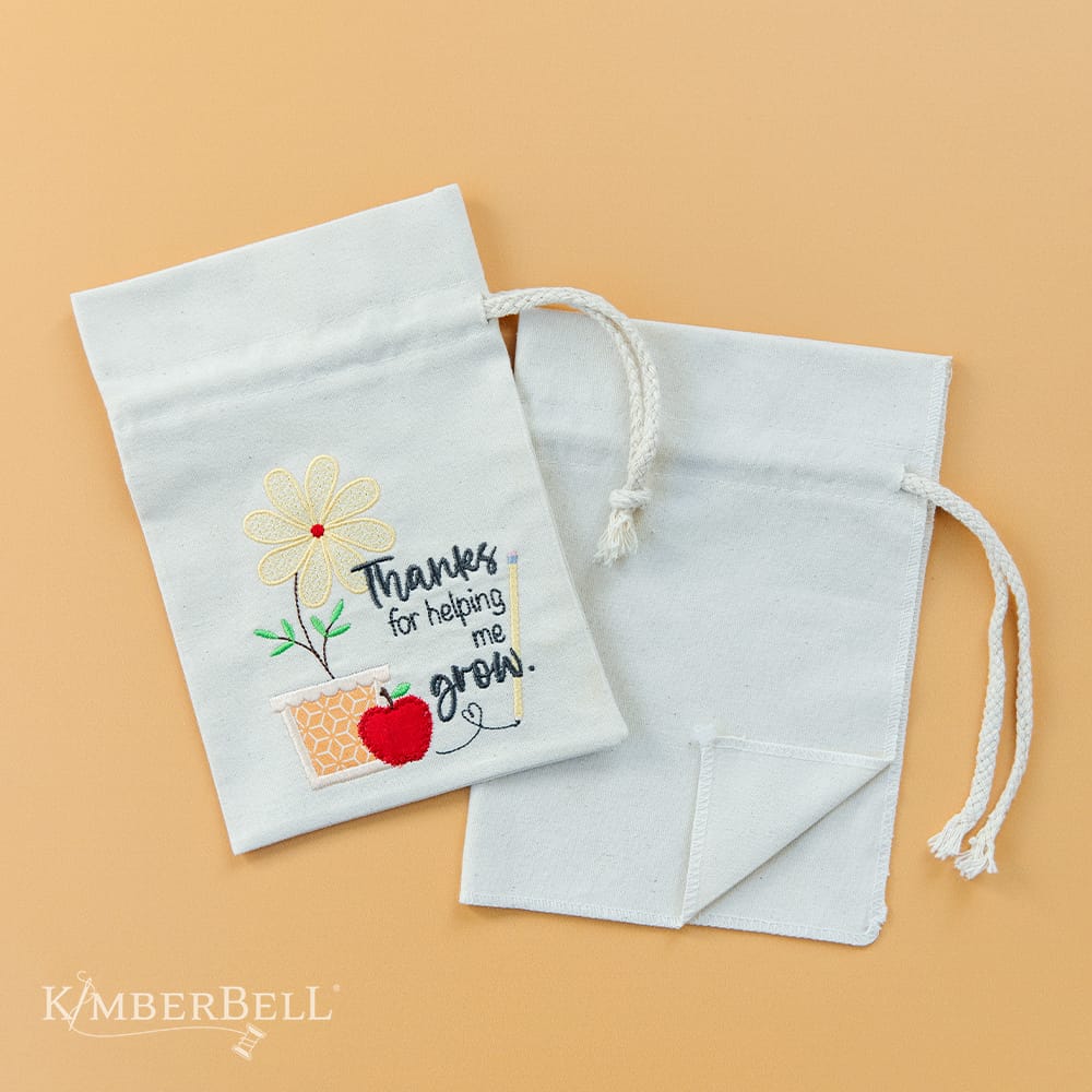 Create gifts and more with Kimberbell Canvas Cinch Sack Blanks! Easy to embroider with serged, open side seams, each sack is 5½ x 8” and closes with a rope drawstring.