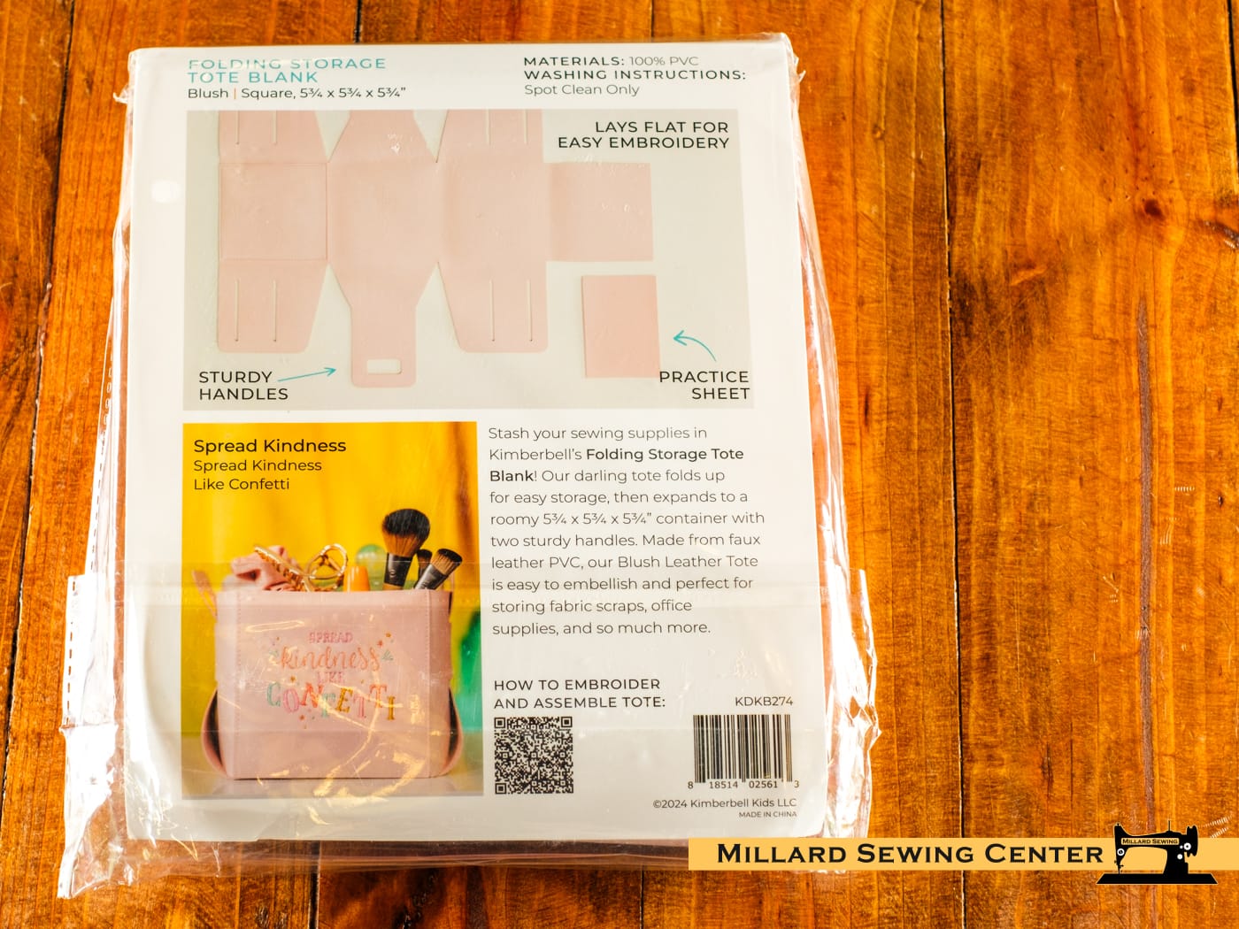 Stash sewing supplies and so much more in Kimberbellโs Folding Storage Tote Blank! Made of faux leather in a gorgeous blush color, our tote blank is easy to embellish with your favorite machine embroidery design. Stitch your design on the included panel, then flip and fold to create a roomy 5 ยพโ x 5 ยพโ x 5 ยพโ tote with two sturdy handles! From fabric scraps to your favorite snacks, our Folding Storage Tote Blank is giftable, functional, and coordinates perfectly with Kimberbell Everyday Appliquรฉs and Demo December!